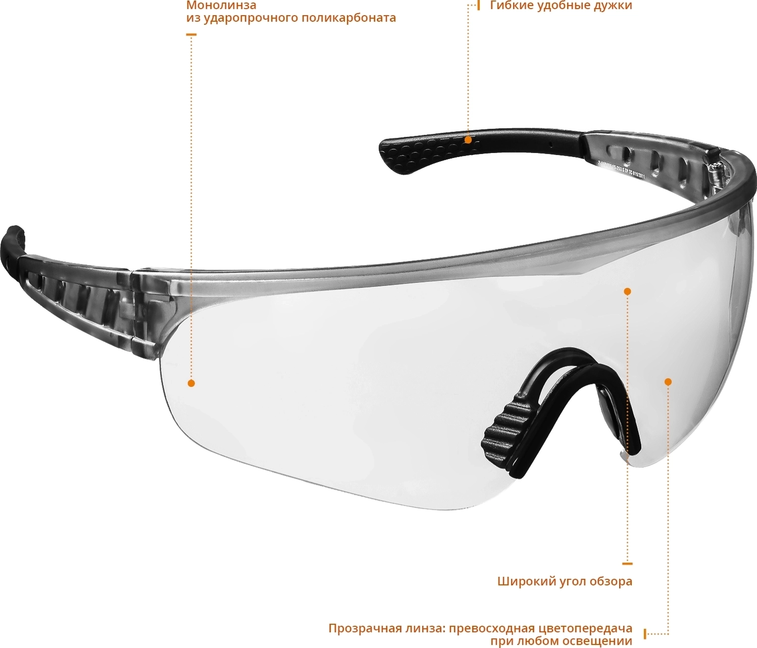 Очки защитные STAYER предназначены для защиты органов зрения от твердых летящих частиц.