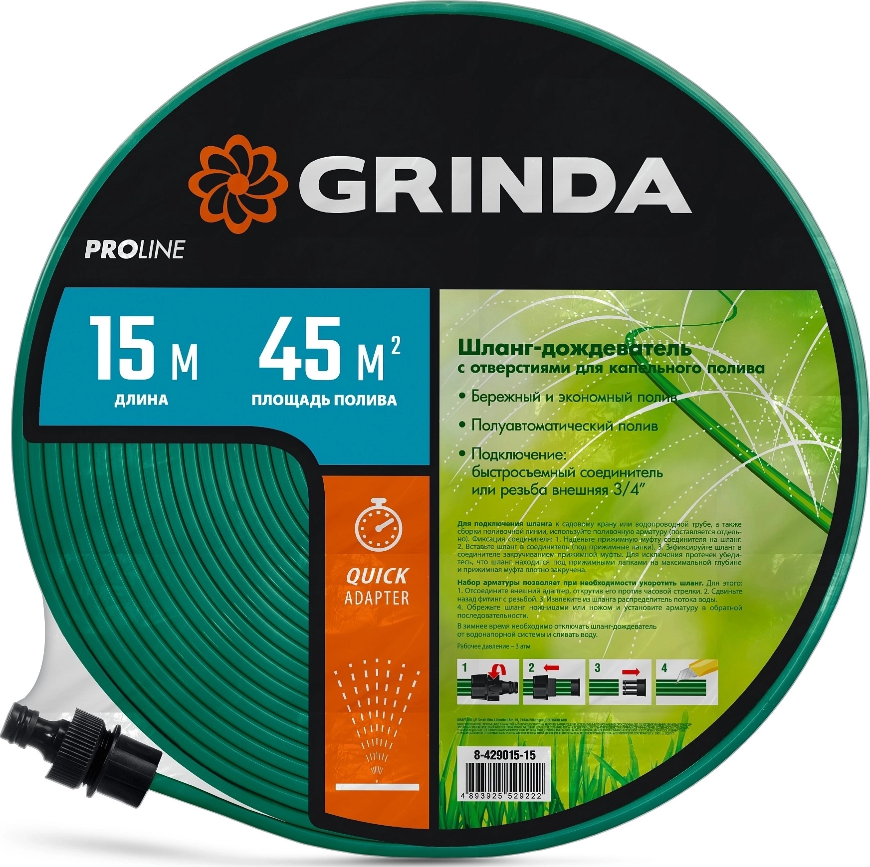 Шланг-дождеватель PROLine GRINDA S-15 15 м микроперфорация