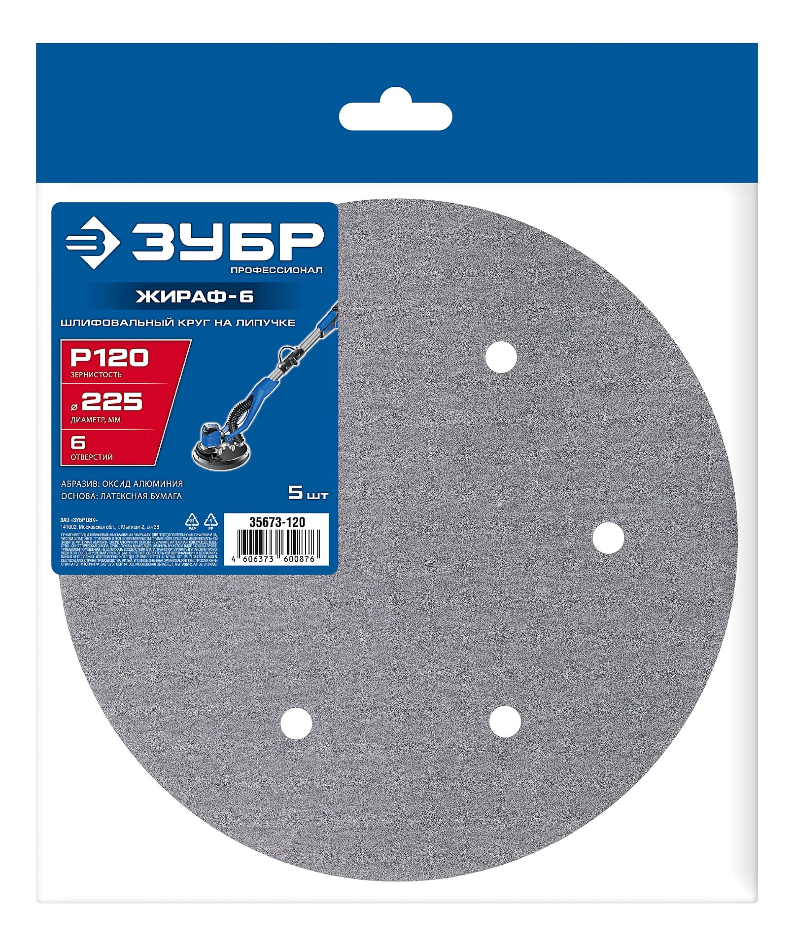 Профессионал Жираф-6 225 мм, Р120, шлифовальный круг на липучке, 6 отв., 5 шт. арт. 122048