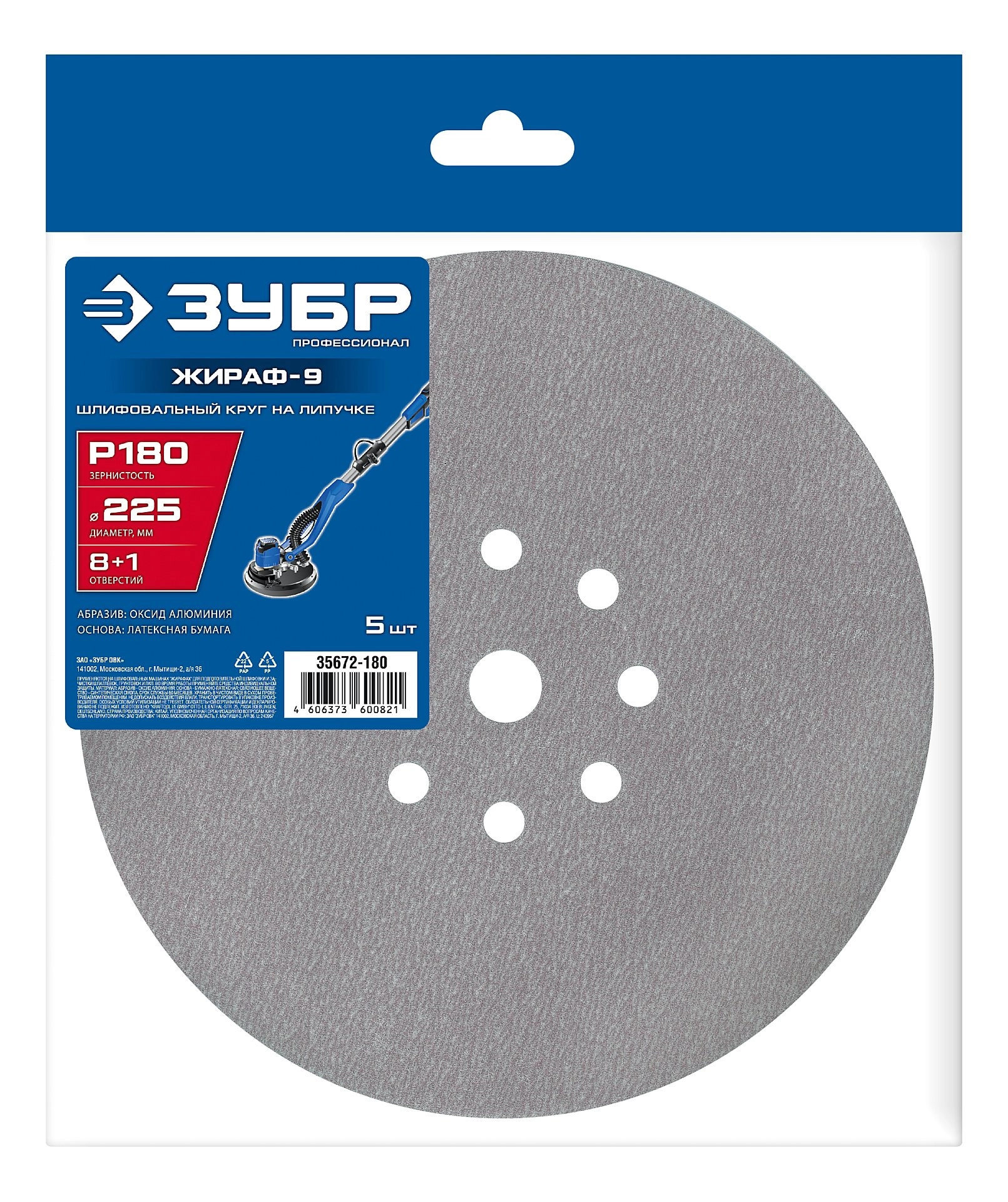 Профессионал Жираф-9 225 мм, Р180, шлифовальный круг на липучке, 9 отв., 5 шт. арт. 122044
