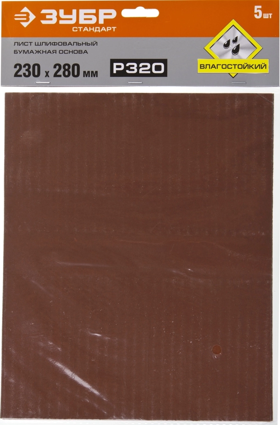 Шлифовальный лист на бумажной основе ЗУБР Р320, 230 х 280 мм, 5 шт, водостойкий