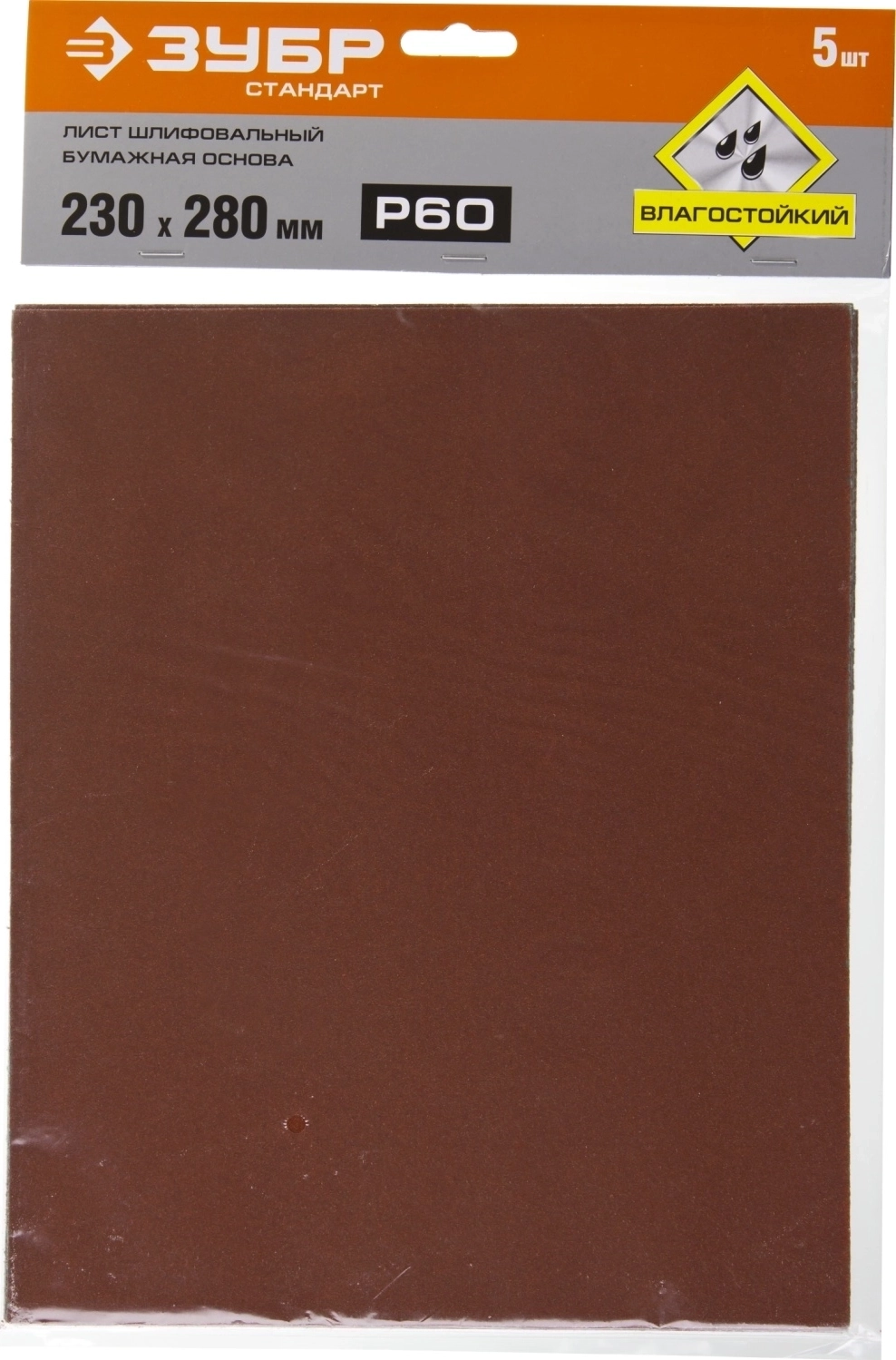 Шлифовальный лист на бумажной основе ЗУБР Р60, 230 х 280 мм, 5 шт, водостойкий