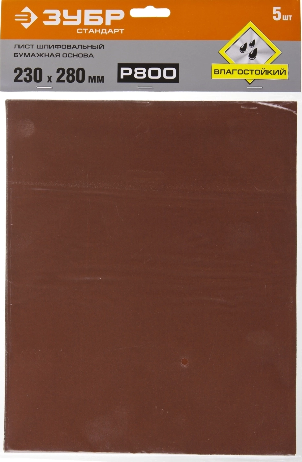 Шлифовальный лист на бумажной основе ЗУБР Р800, 230 х 280 мм, 5 шт, водостойкий