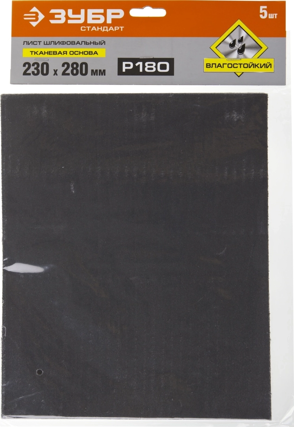 Шлифовальный лист на тканевой основе ЗУБР Р180, 230 х 280 мм, 5 шт, водостойкий