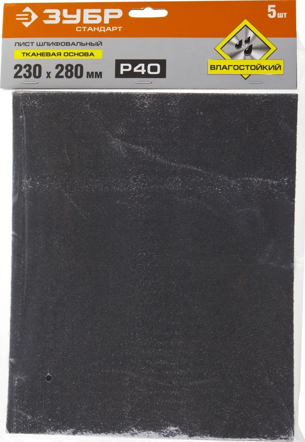 Шлифовальный лист на тканевой основе ЗУБР Р40, 230 х 280 мм, 5 шт, водостойкий