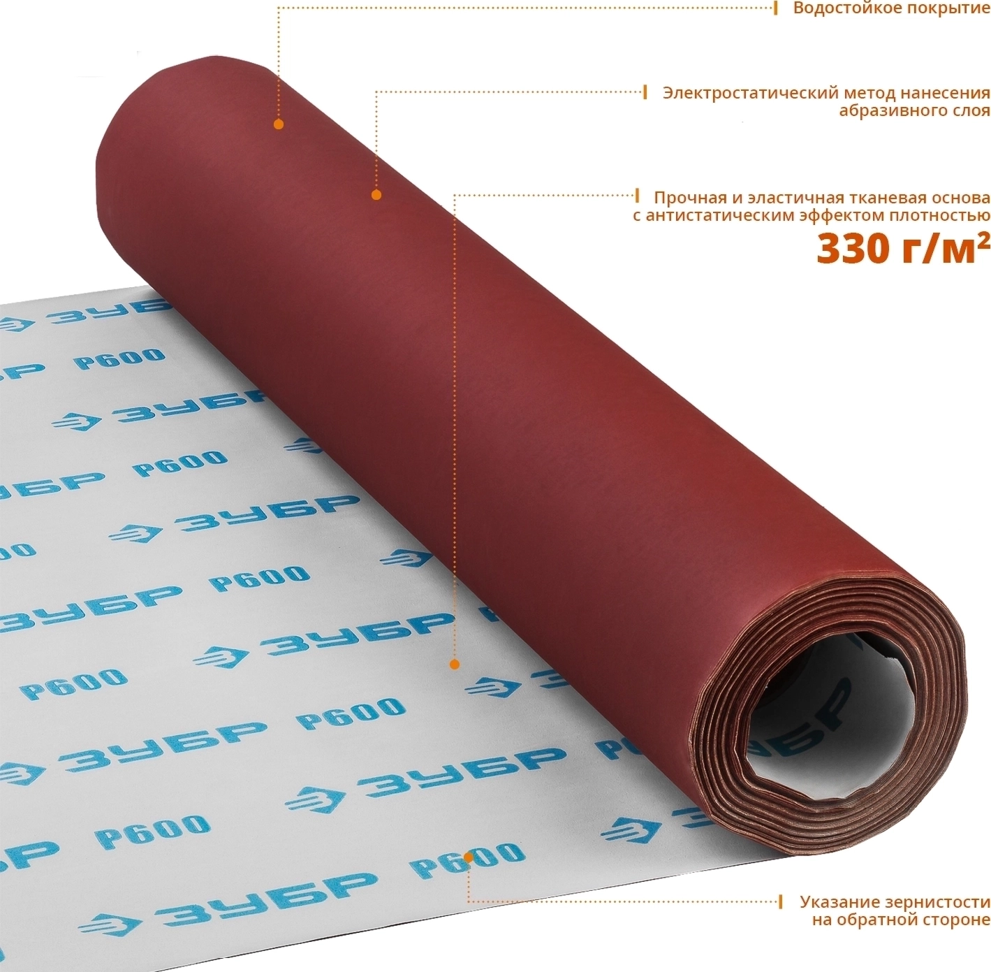 Шлифовальный рулон на тканевой основе ЗУБР Р600 800 мм 30 м водостойкий