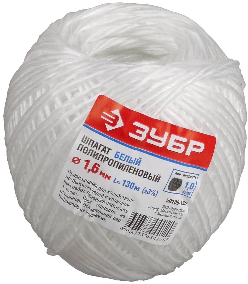 Полипропиленовый шпагат d 1.5 мм, 110 м, 800 текс, 32 кгс, белый арт. 109047