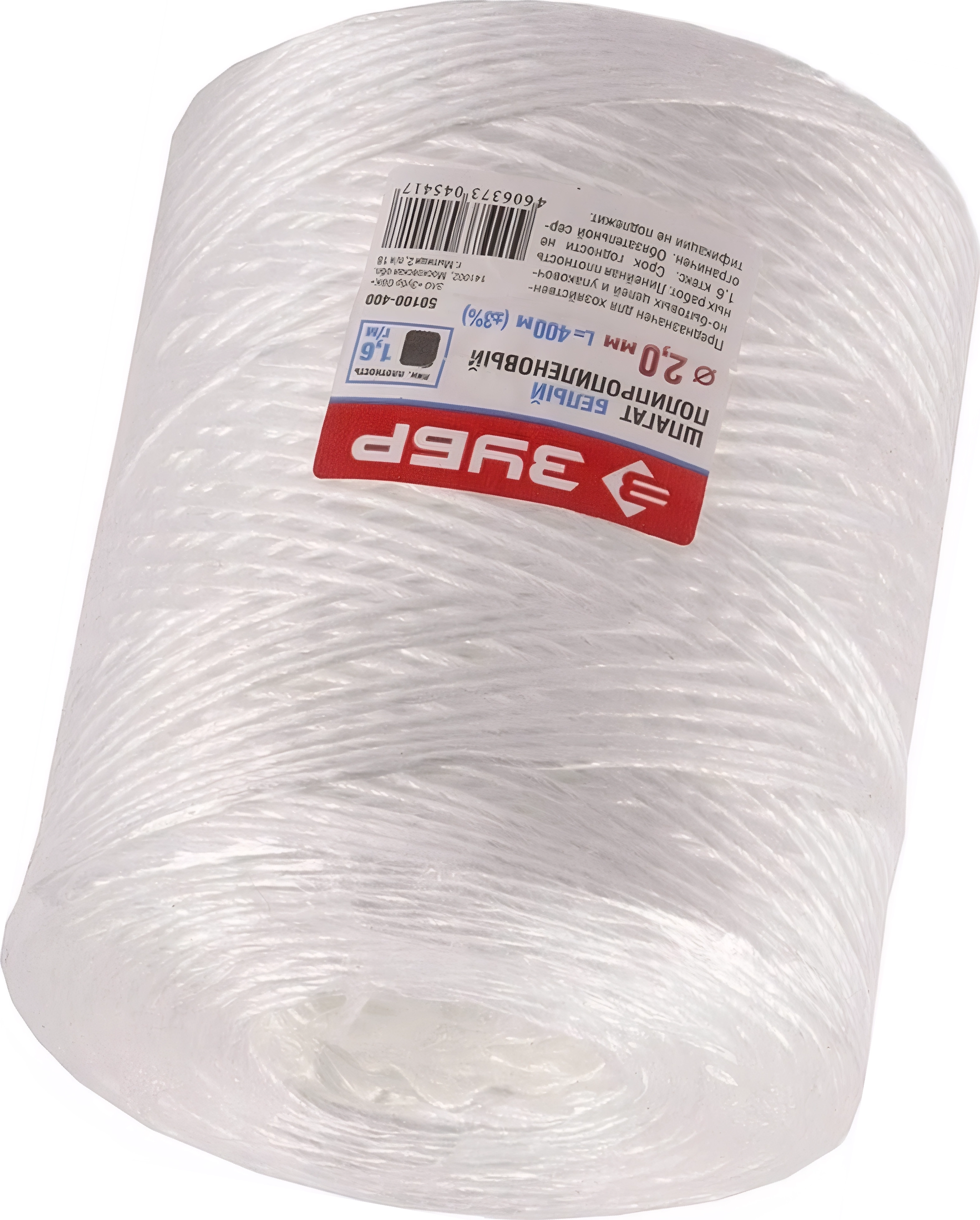 Полипропиленовый шпагат d 2.0 мм, 400 м, 1600 текс, 22 кгс, белый арт. 109039