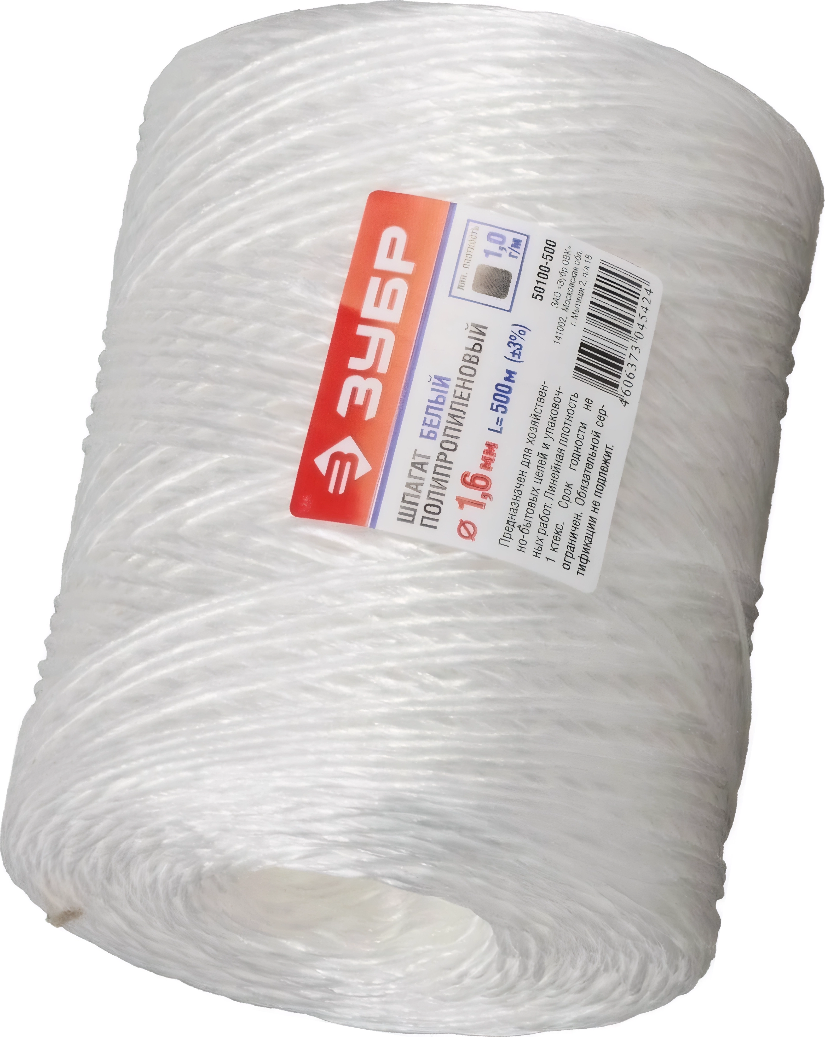 Полипропиленовый шпагат d 1.6 мм, 500 м, 1600 текс, 32 кгс, белый арт. 109040