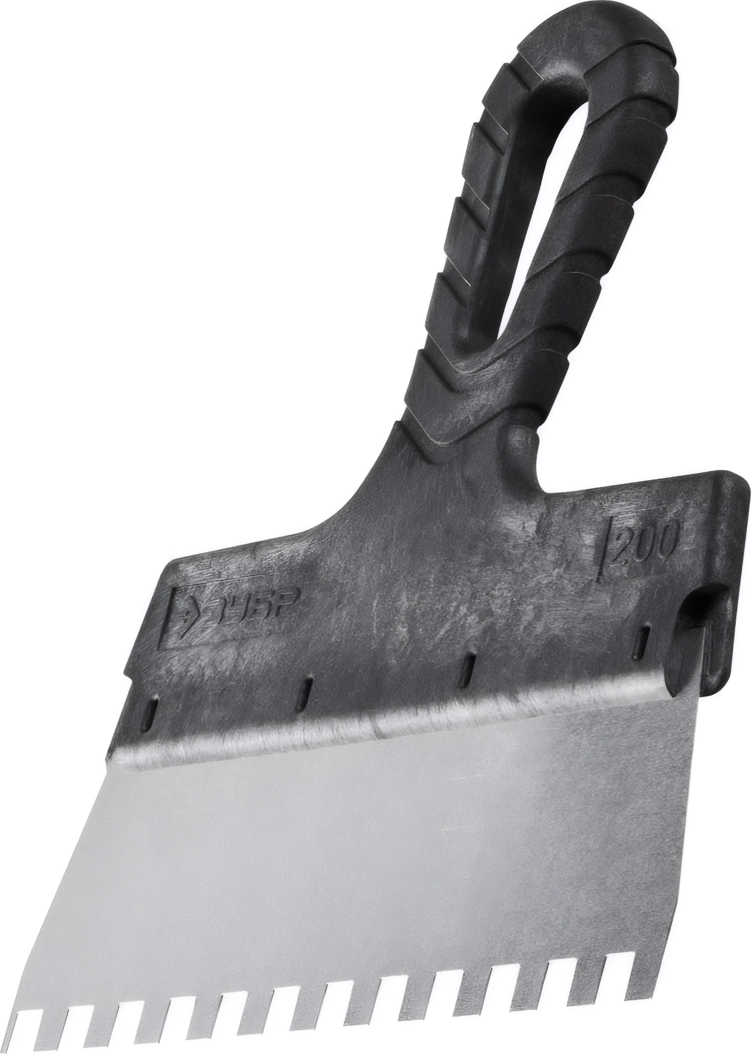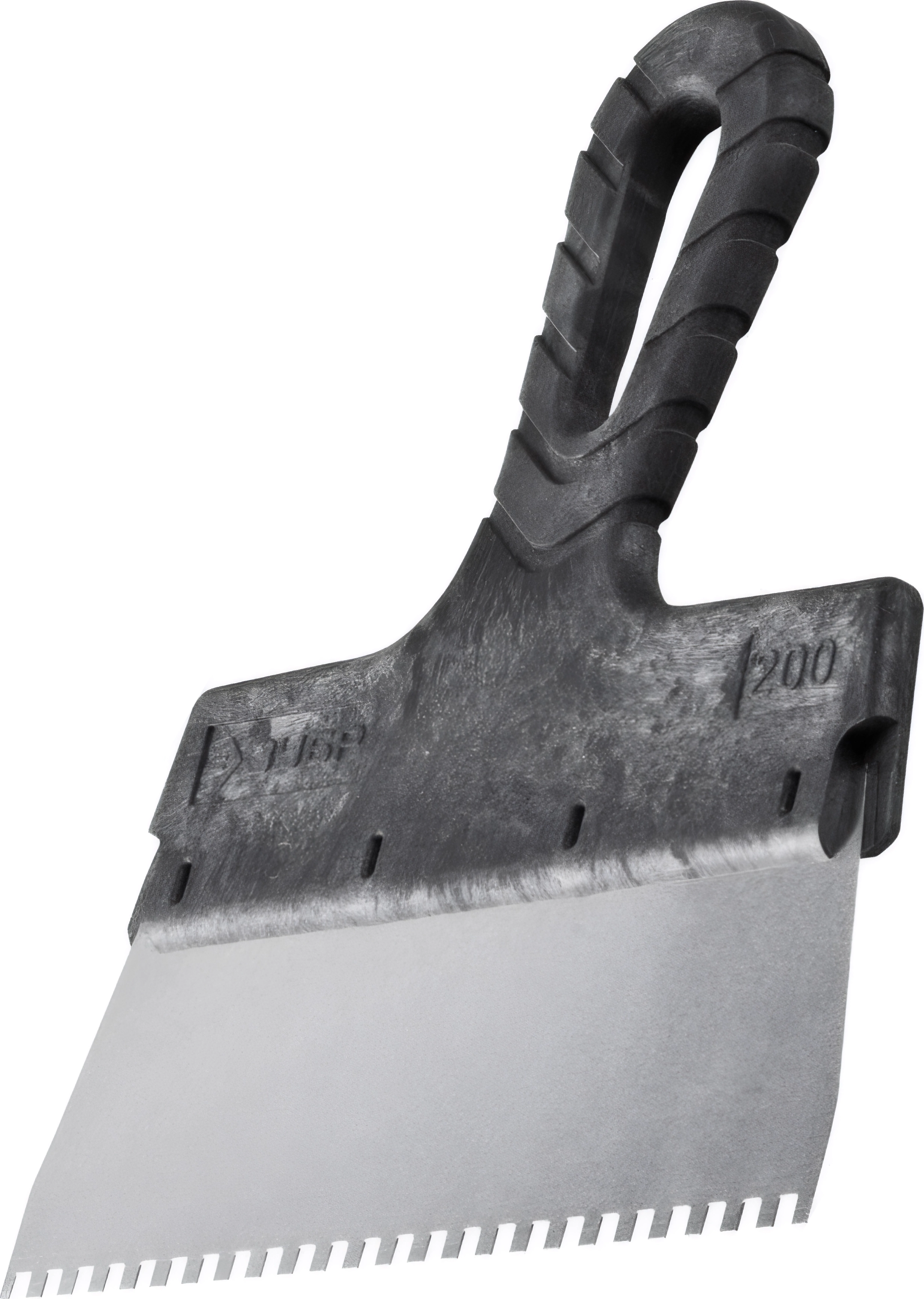 Нержавеющий фасадный шпатель 200 мм, зуб 4 х 4мм, пластиковая ручка арт. 100282