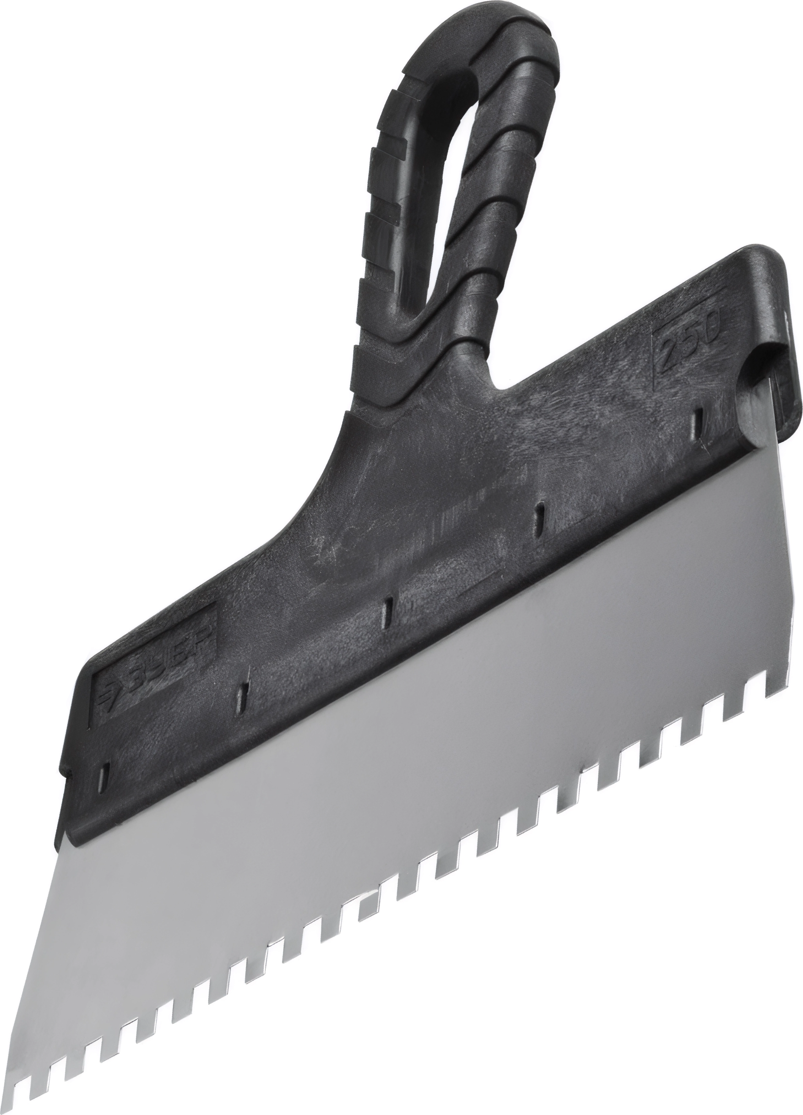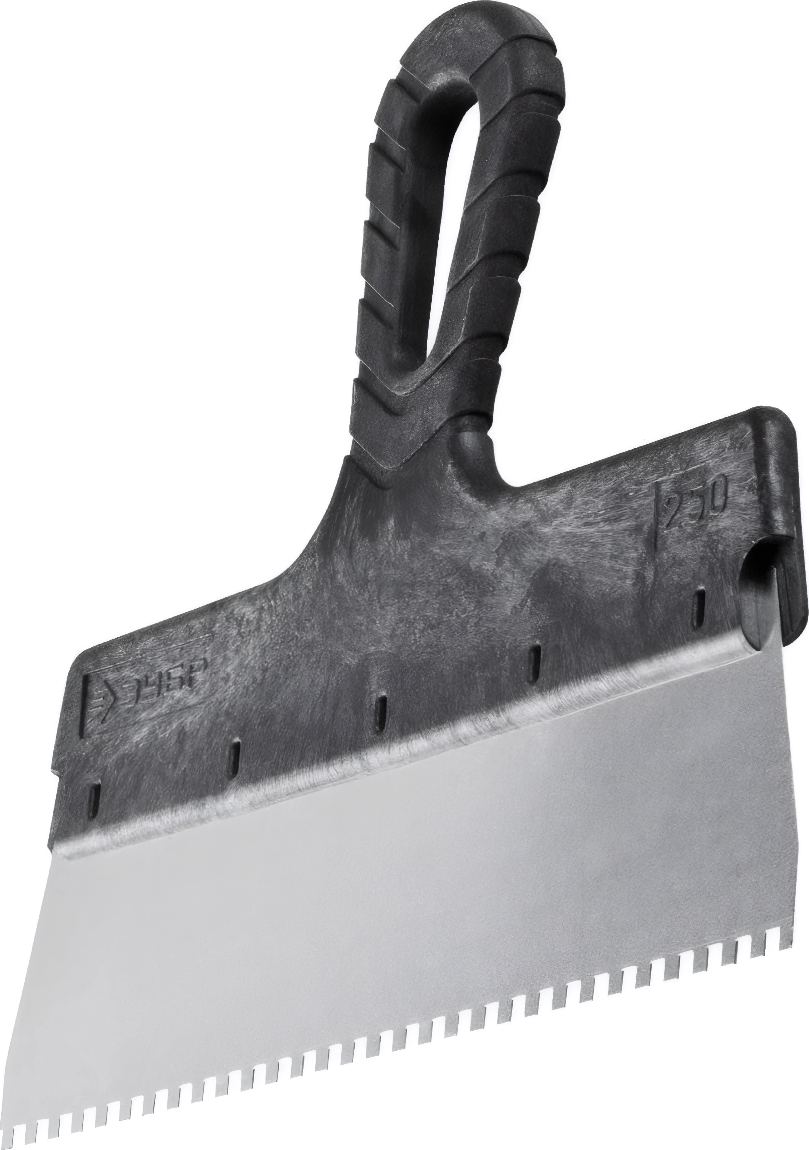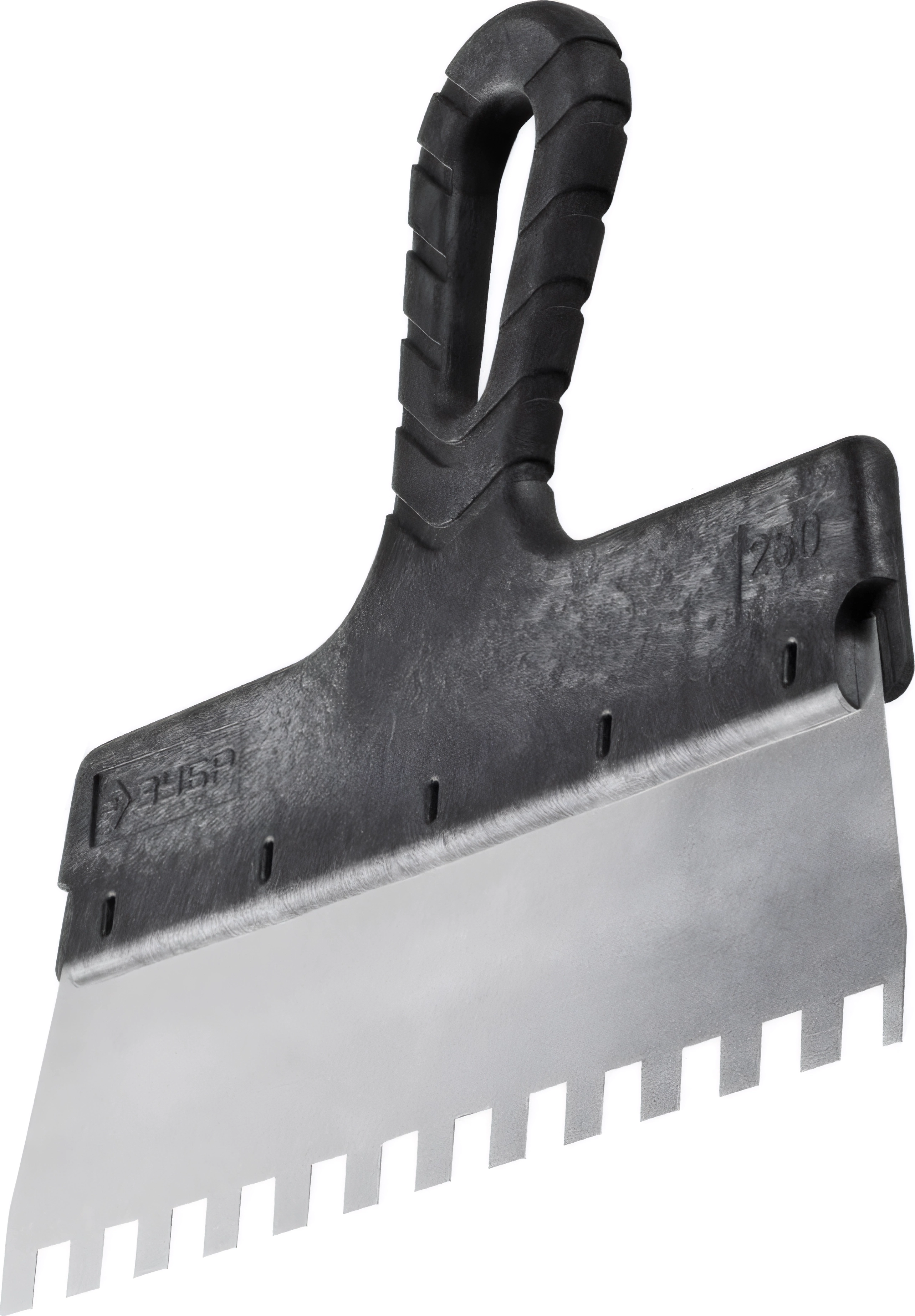Нержавеющий фасадный шпатель 250 мм, зуб 10 х 10 мм, пластиковая ручка арт. 100289