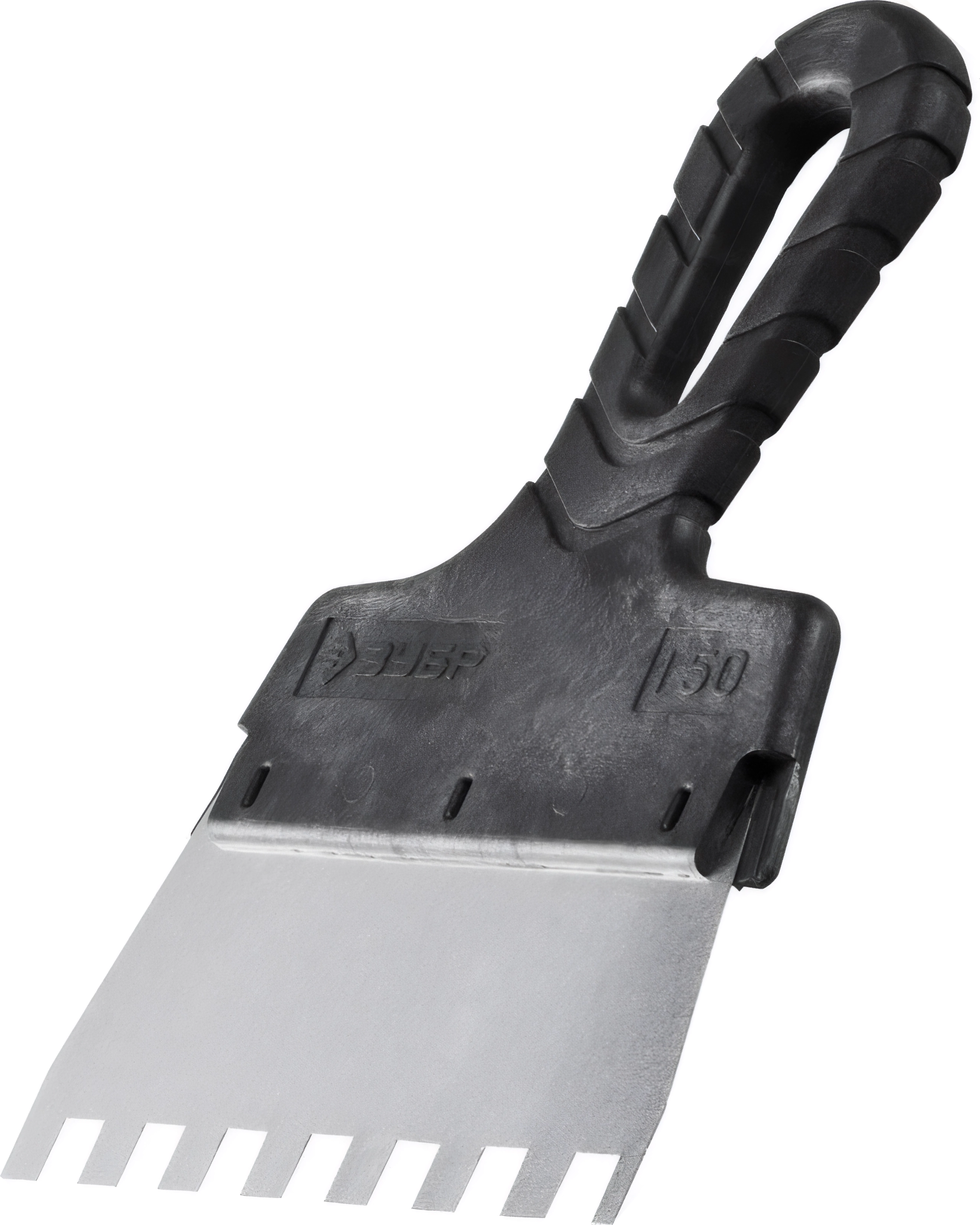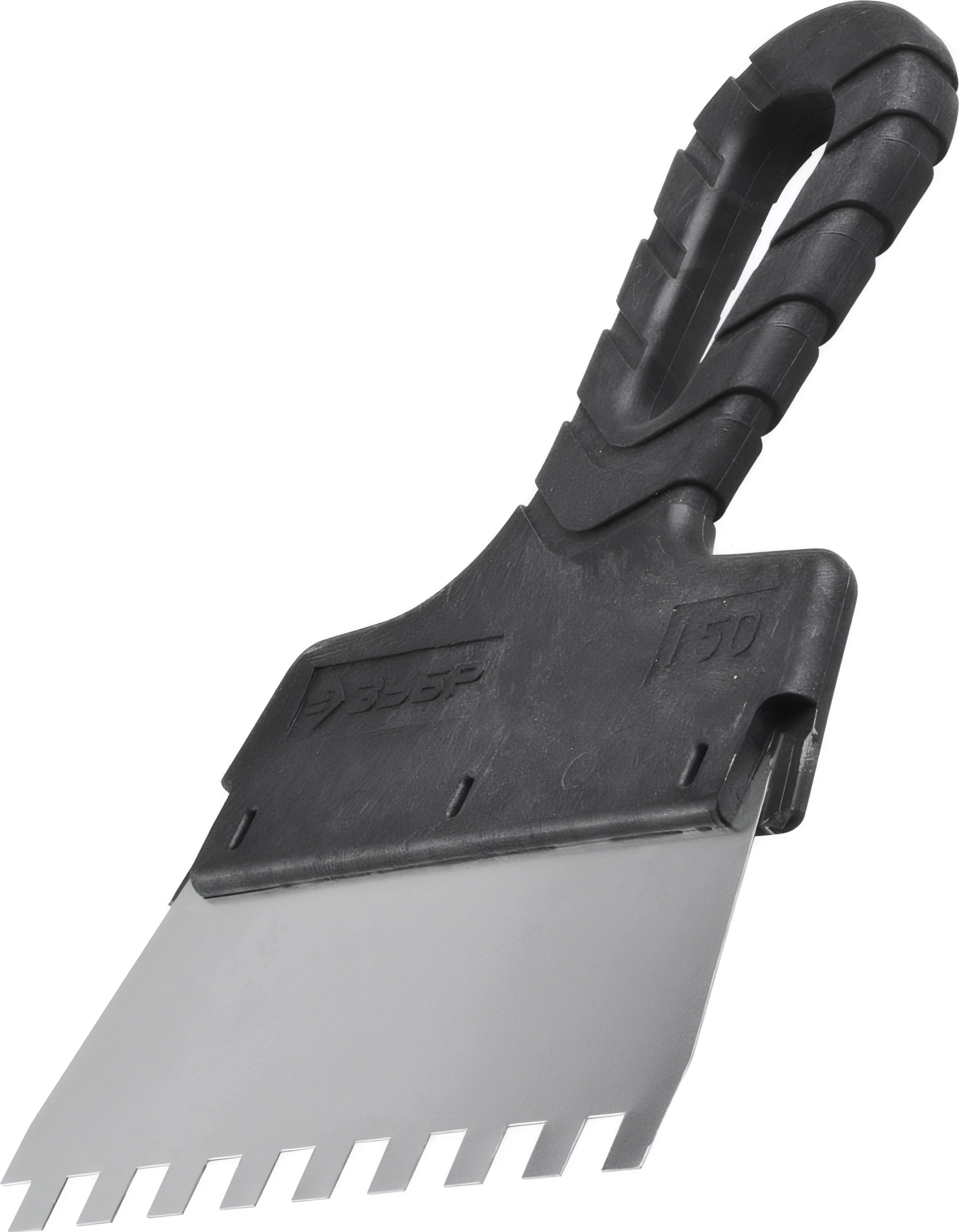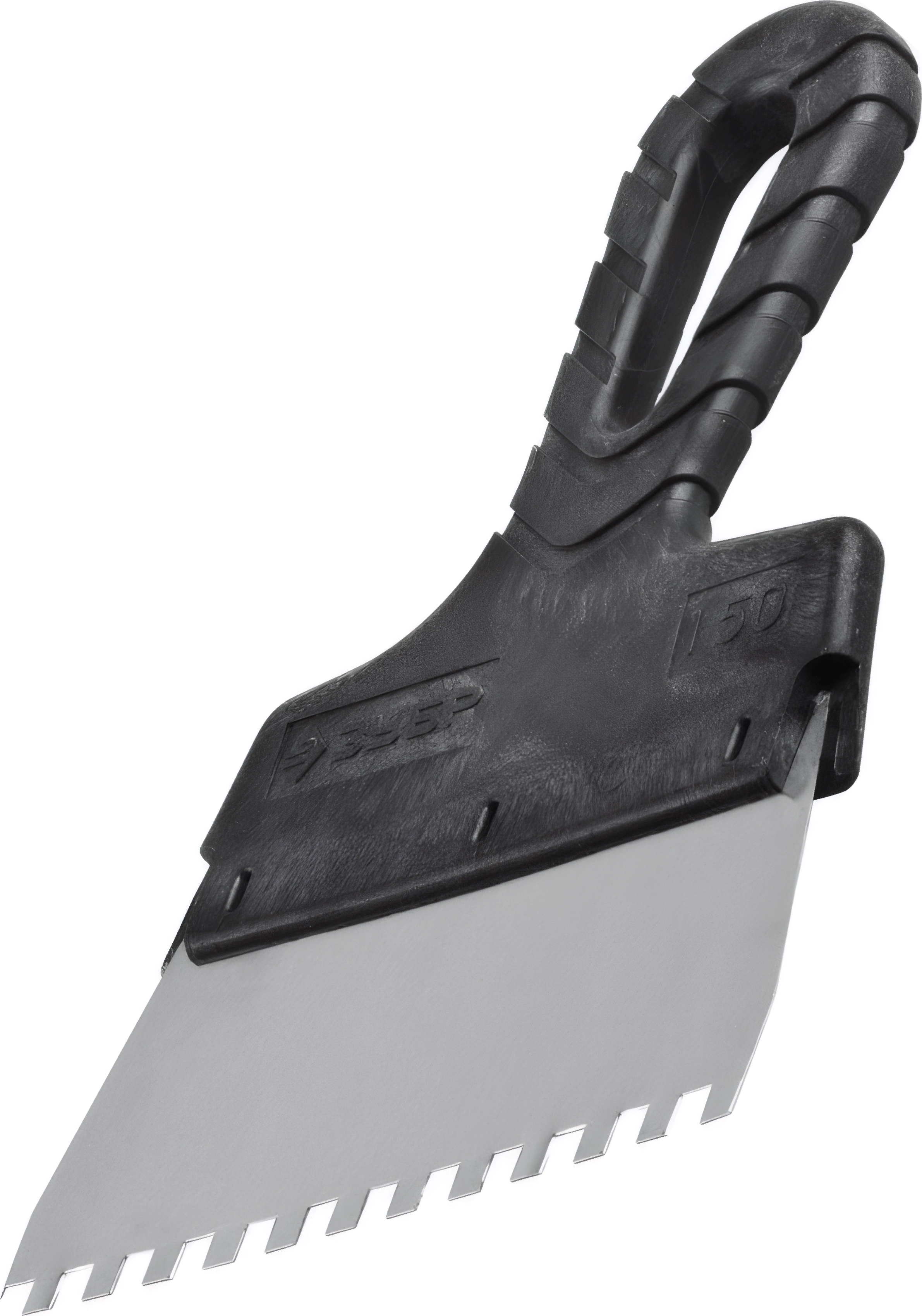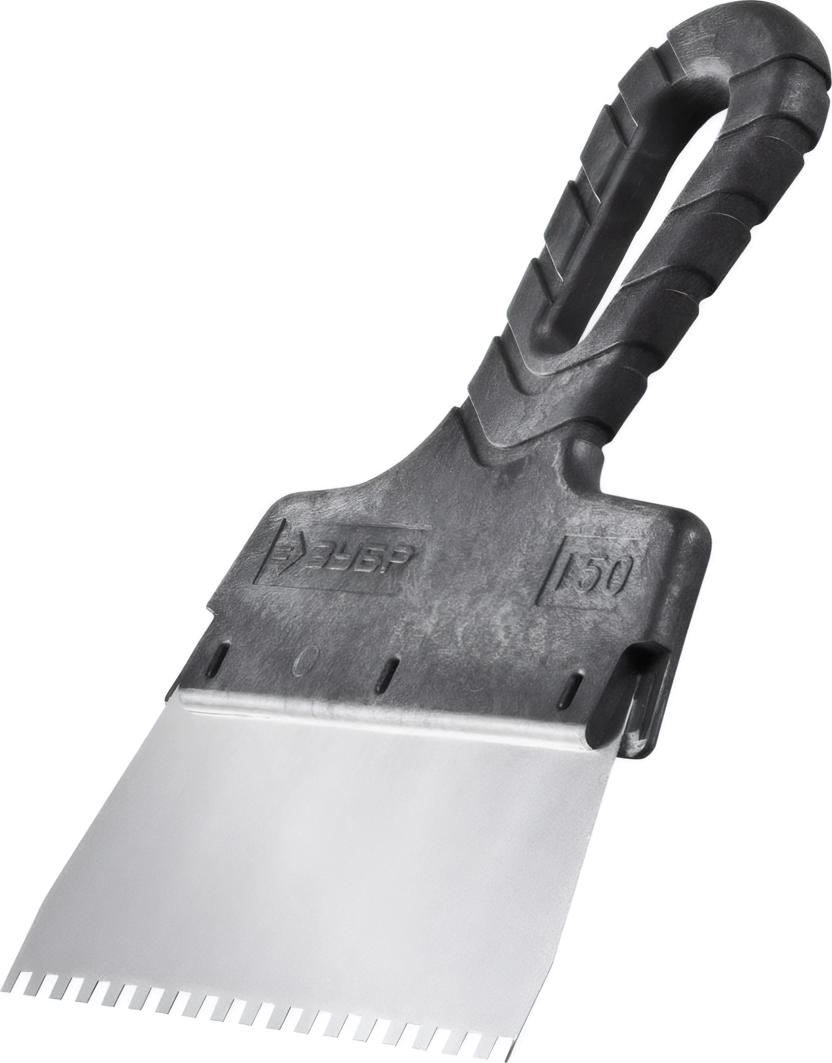 Нержавеющий фасадный шпатель 150 мм, зуб 6 х 6 мм, пластиковая ручка арт. 100279