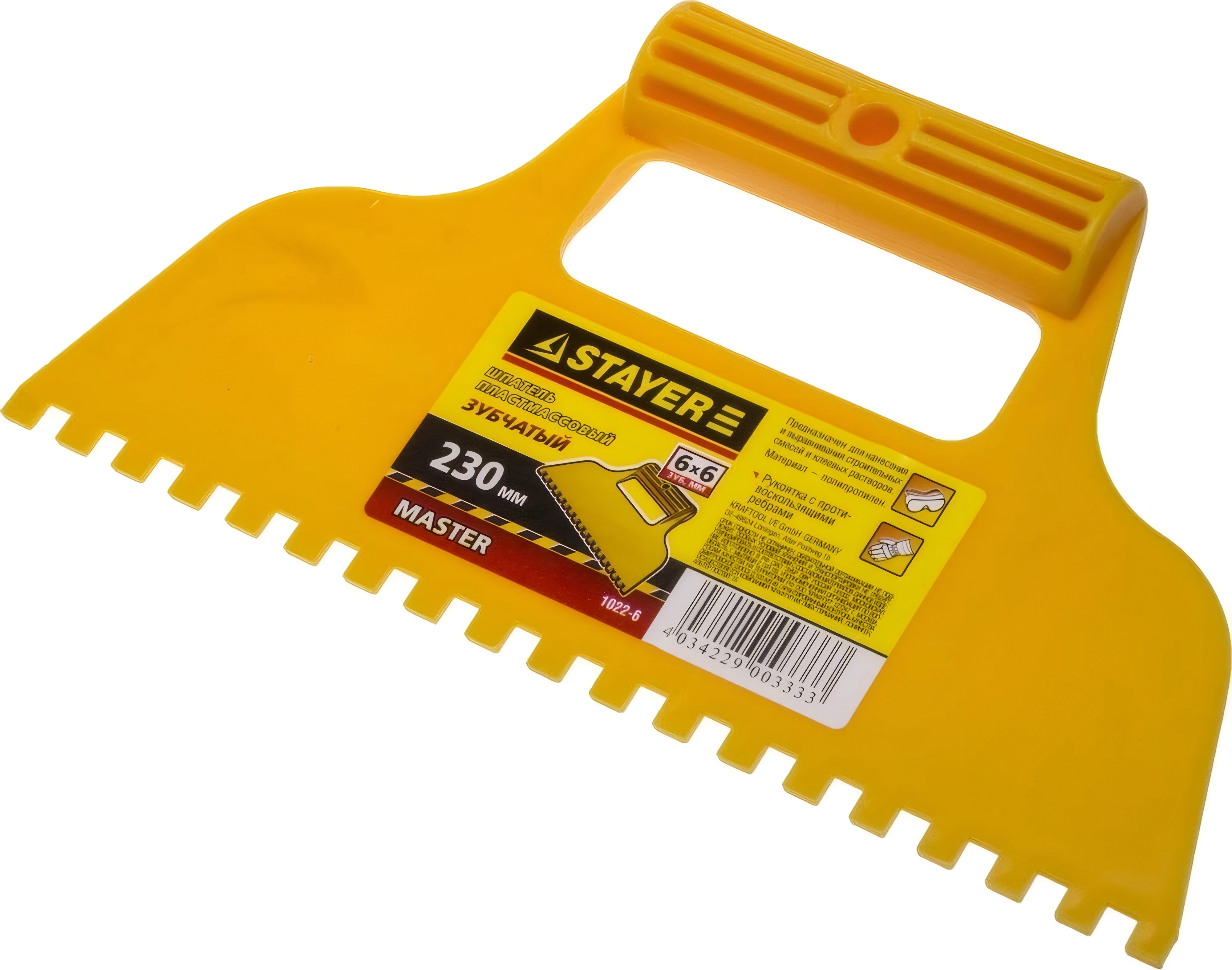 Малярный шпатель 230 мм, зубчатый 6 х 6 мм, пластмассовый арт. 100270