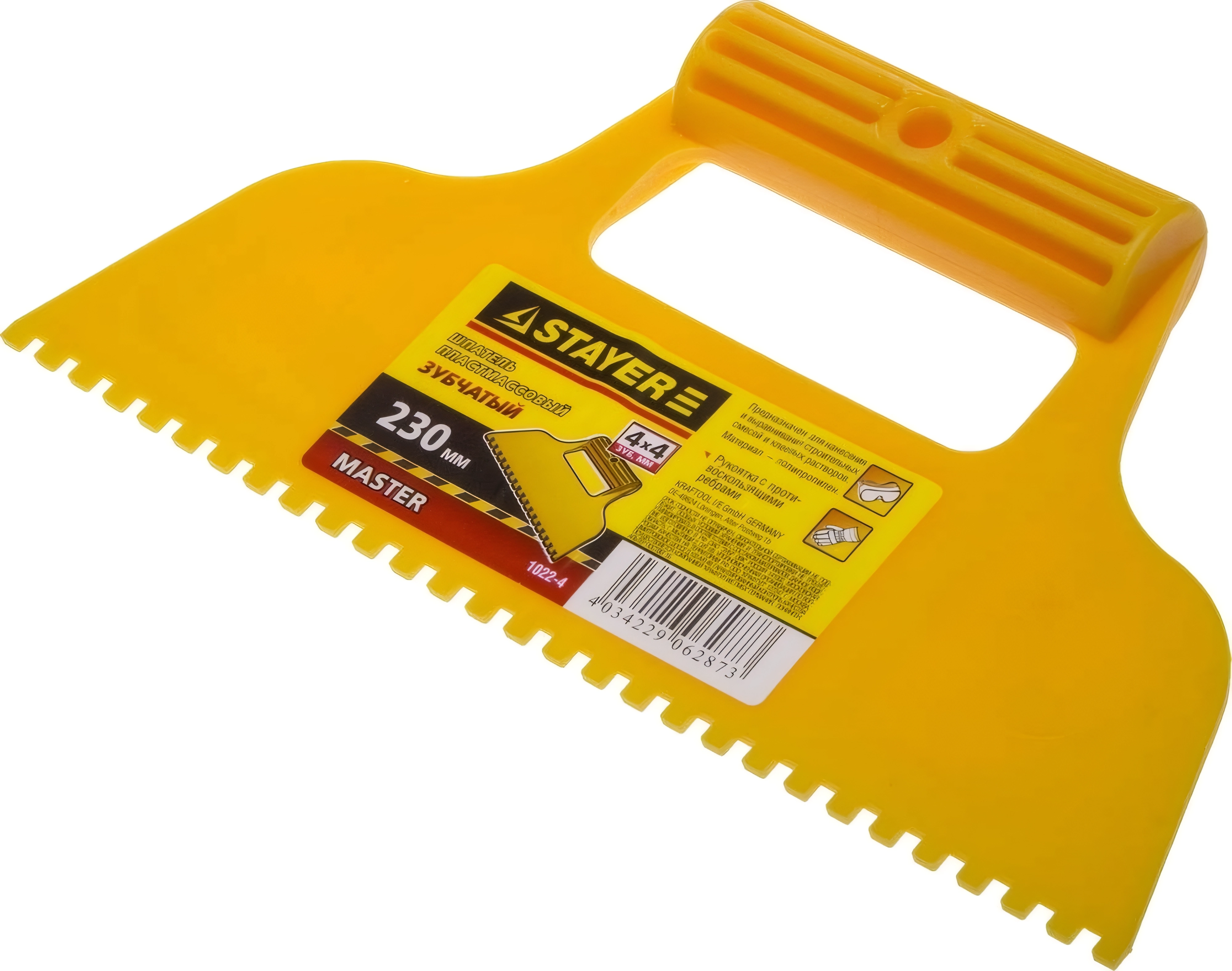 Малярный шпатель 230 мм, зубчатый 4 х 4 мм, пластмассовый арт. 100269