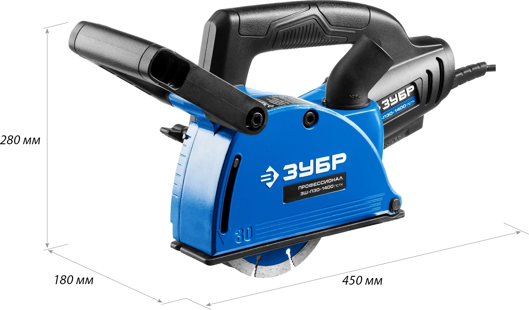 Профессиональный штроборез ЗУБР для выполнения штроб глубиной до 30 мм в легких и средних бетонах. Расширенная (по сравнению с ЗШ-П30-1400 ПСТ) комплектация включает удобный кейс для хранения и переноски. Легкость и компактность позволяют длительно держать его на весу при работе на вертикальных поверхностях