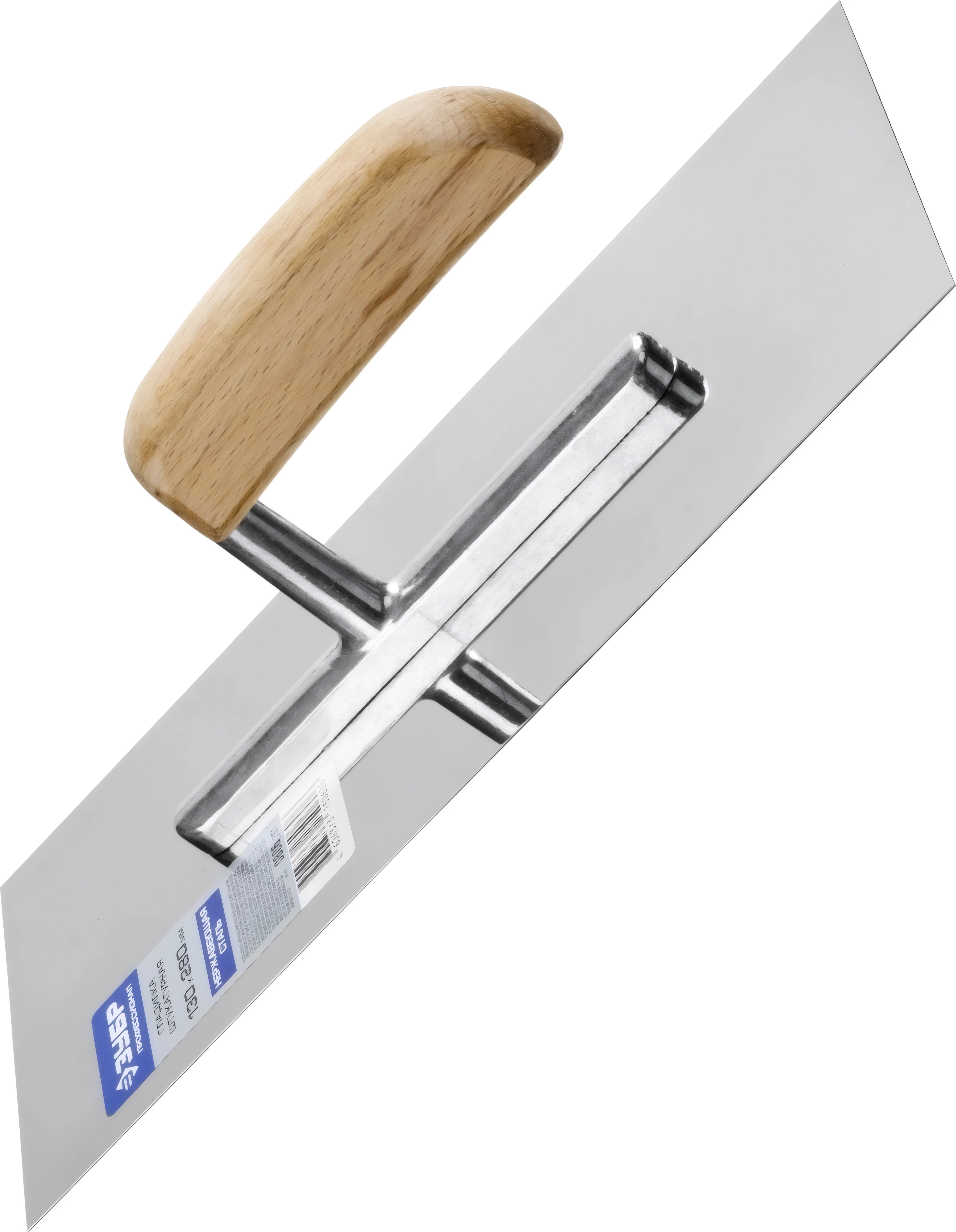Зеркально отполированное нержавеющее полотно обеспечит надежность конструкции, лучшую защиту от коррозии, а удобная деревянная рукоять обеспечит комфортную работу при нанесении и распределении штукатурных смесей и клеевых составов.