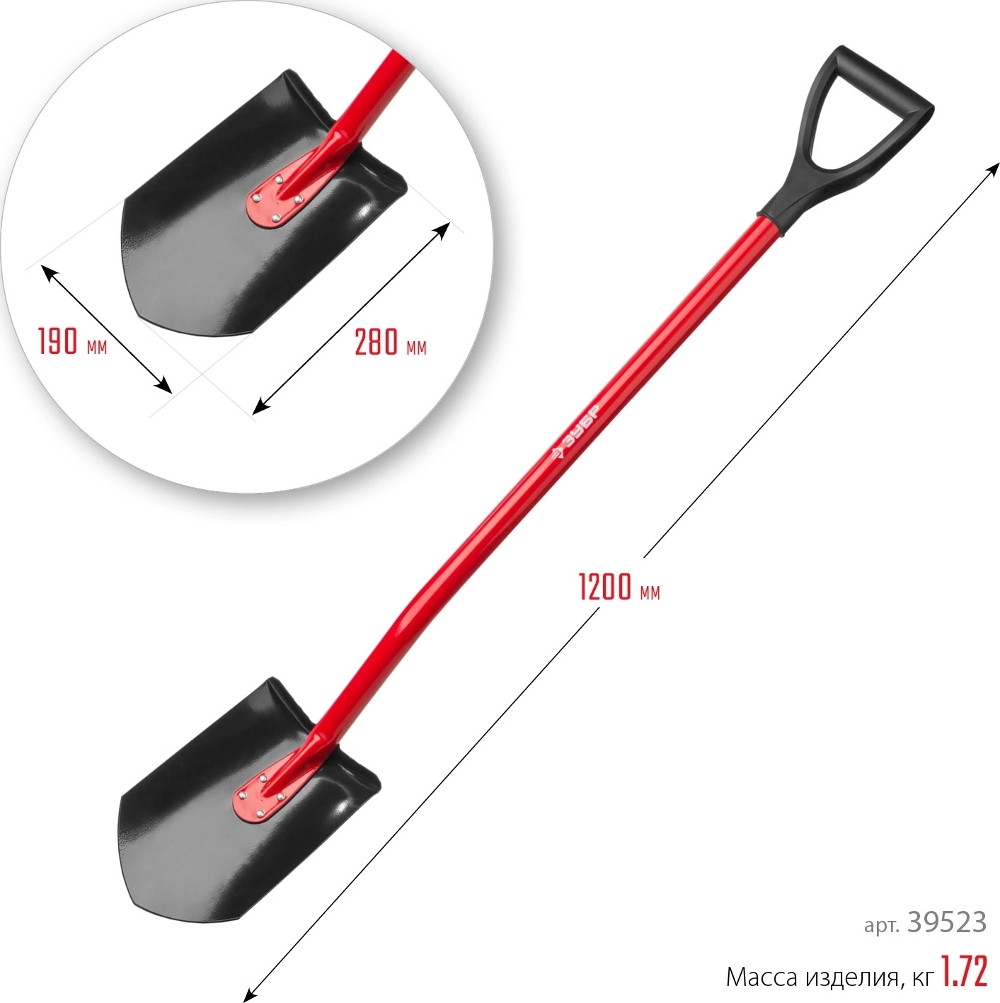 Штыковая лопата ЗУБР МАСТЕР, 280 х 190 х 1200 мм, полотно 1.5 мм, закалено, стальной изогнутый черенок с рукояткой