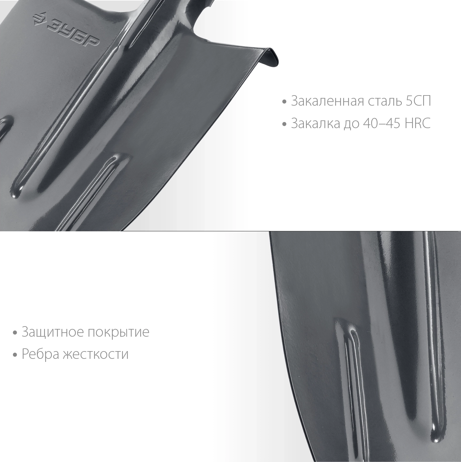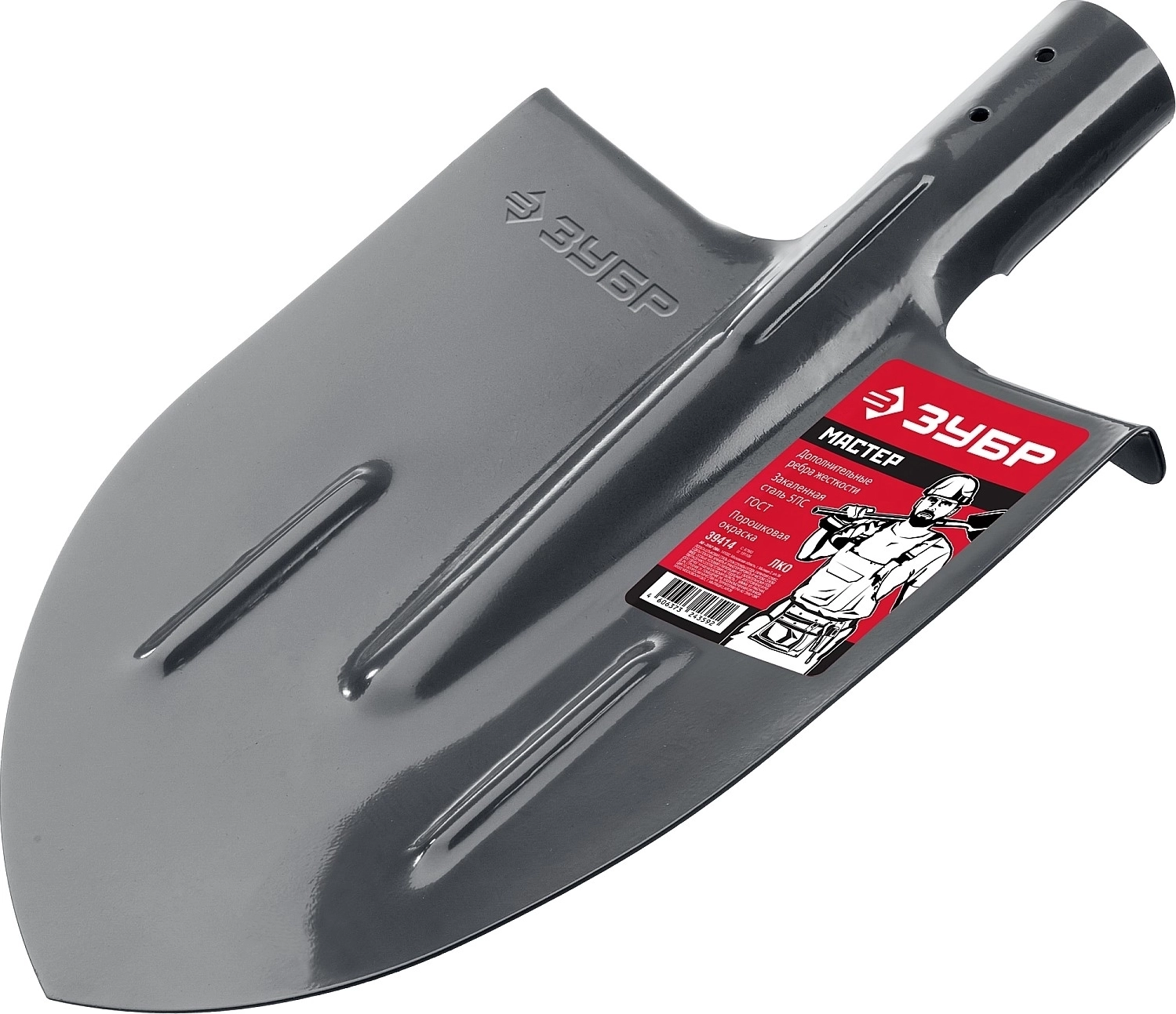 Штыковая лопата ЗУБР Мастер, 380 х 208 мм, полотно 1.6 мм, закалено, с рёбрами жёсткости, без черенка, тип ЛКО