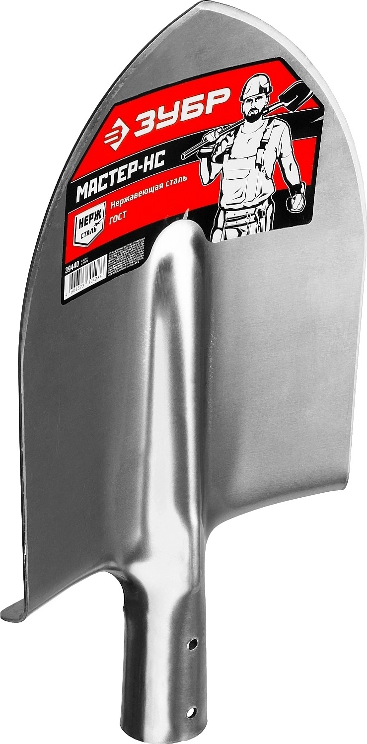 Штыковая лопата ЗУБР Мастер-НС, 380 х 208 мм, полотно 2 мм, нержавеющая сталь, закалено, без черенка, тип ЛКО