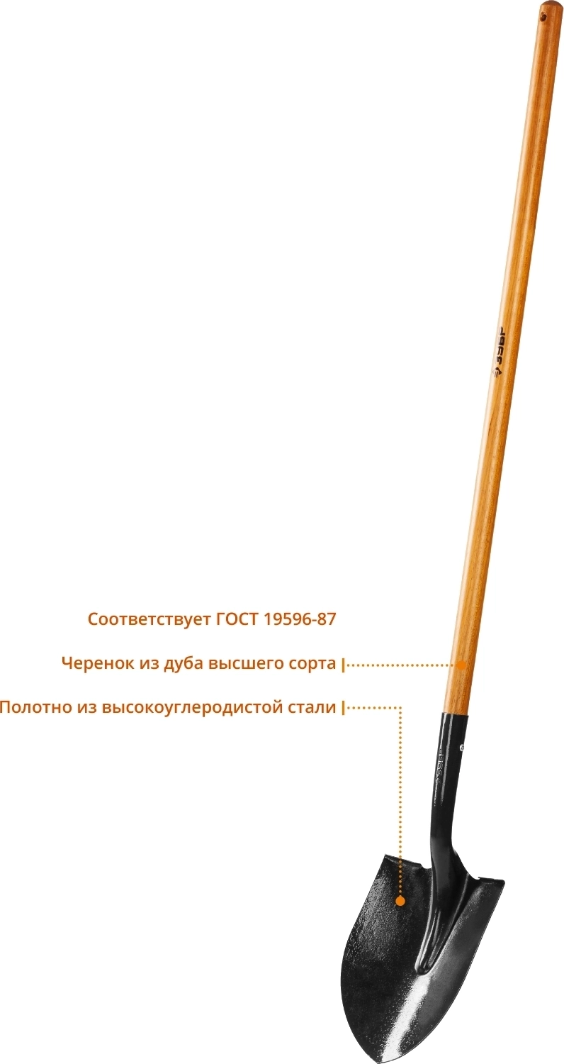 Штыковая лопата ЗУБР Профи-10 290 х 210 х 1500 мм полотно 1.7 мм закалено черенок из дуба высш. сорта тип ЛСГ
