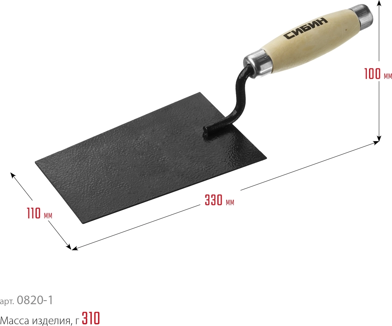 Кельма отделочника СИБИН 175 х 110 х 90 мм, деревянная ручка, стальная