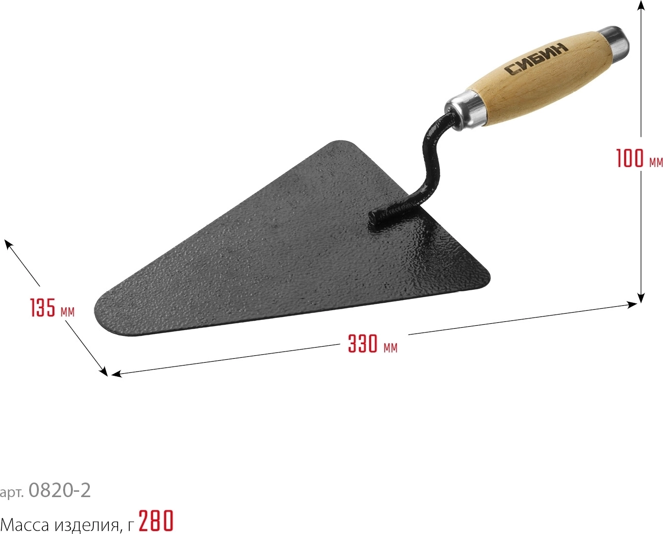 Кельма бетонщика СИБИН 195 х 135 мм, деревянная ручка