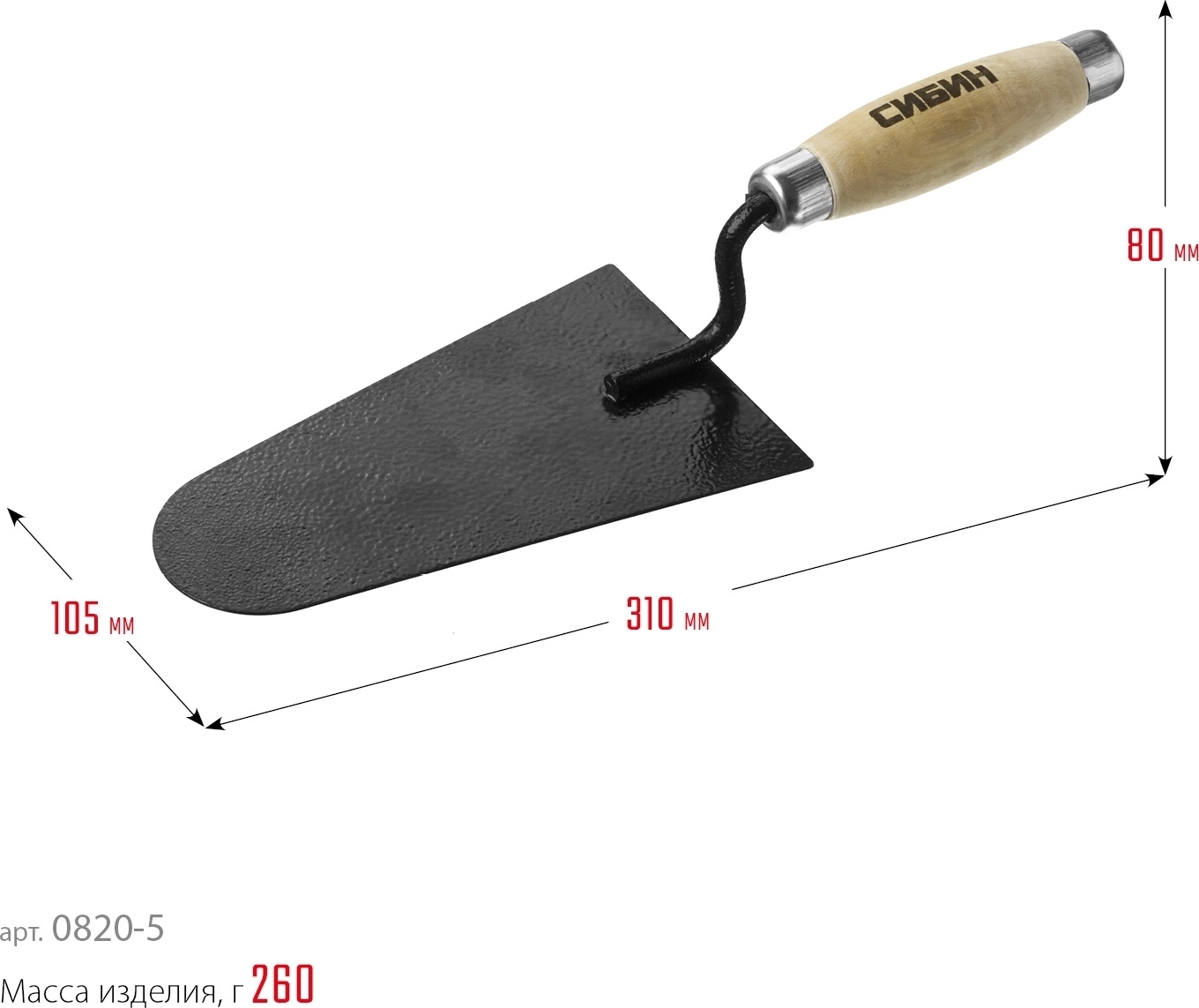 Кельма каменщика СИБИН 175 х 105 мм, деревянная ручка