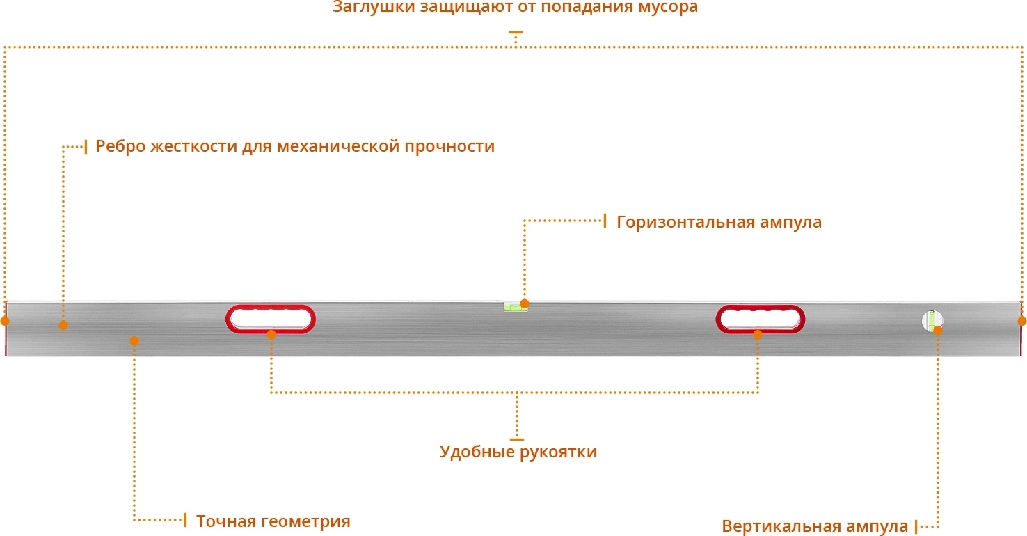 Правило с уровнем и ручками СИБИН 1.5 м, 2 глазка