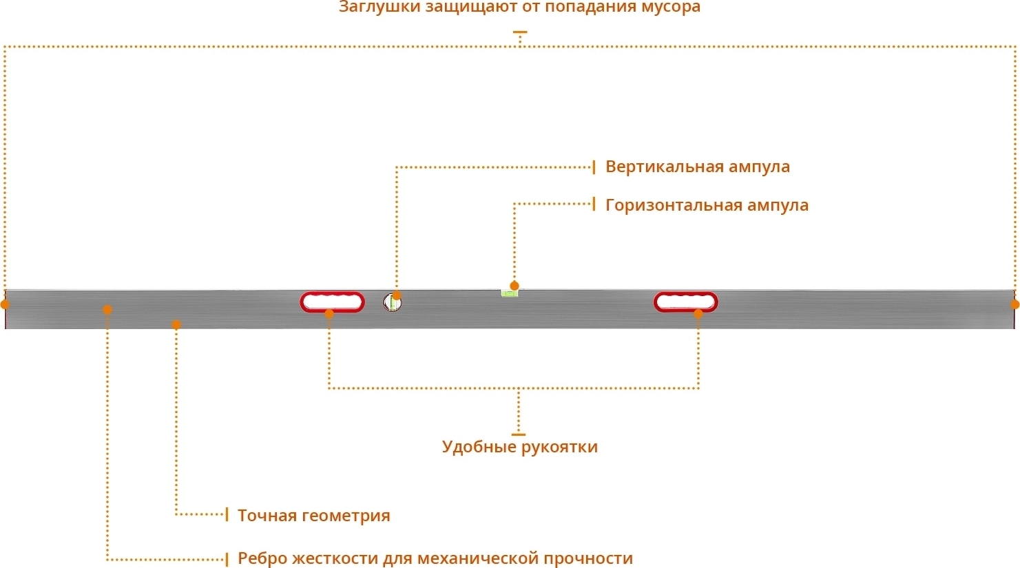 Правило с уровнем и ручками СИБИН 2.5 м, 2 глазка