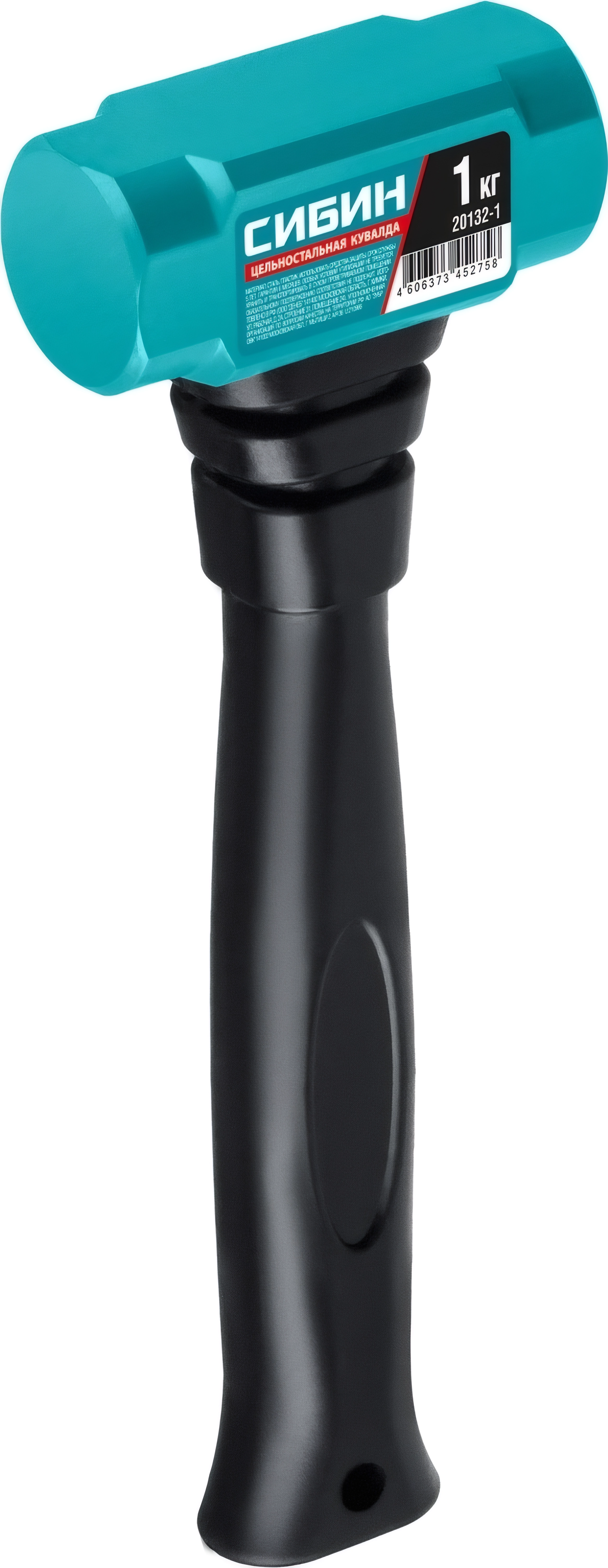Цельностальная кувалда с обрезиненной рукояткой СИБИН 1 кг, 240 мм
