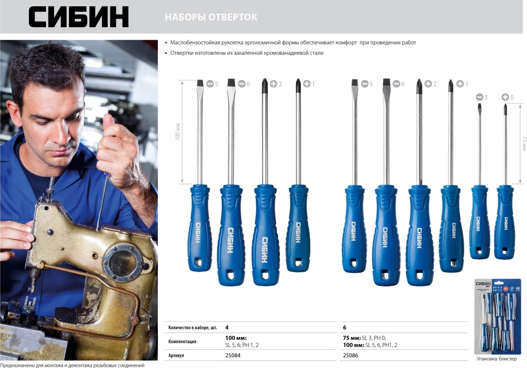 Применяется для монтажа и демонтажа резьбовых соединений. Маслобензостойкая рукоятка эргономичной формы обеспечивает комфорт при проведении работ. Отвертки изготовлены из высококачественной инструментальной стали.