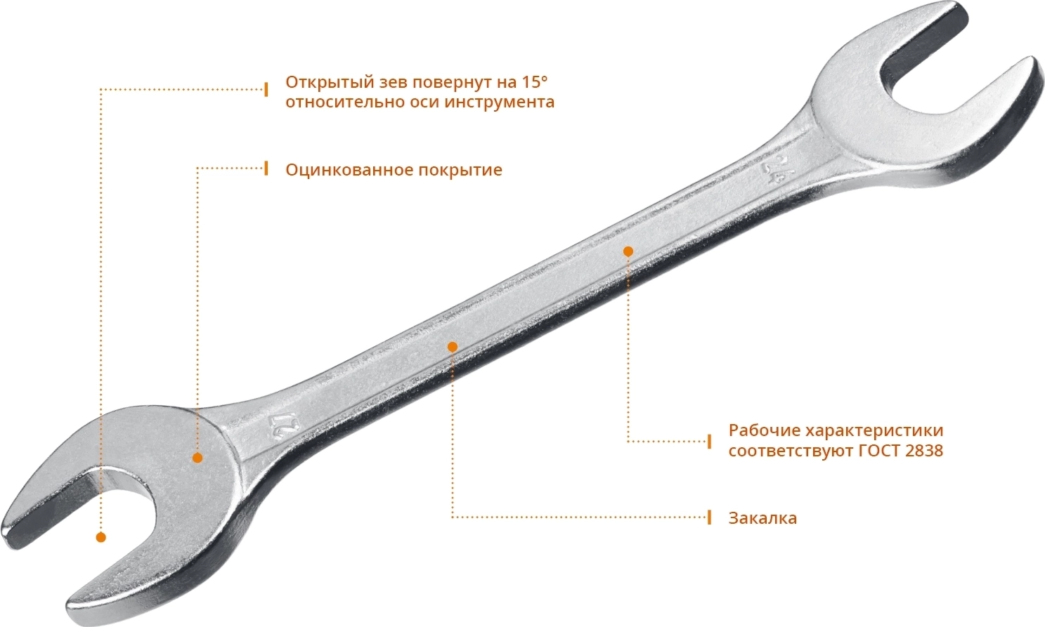 Рожковый гаечный ключ СИБИН 24 x 27 мм