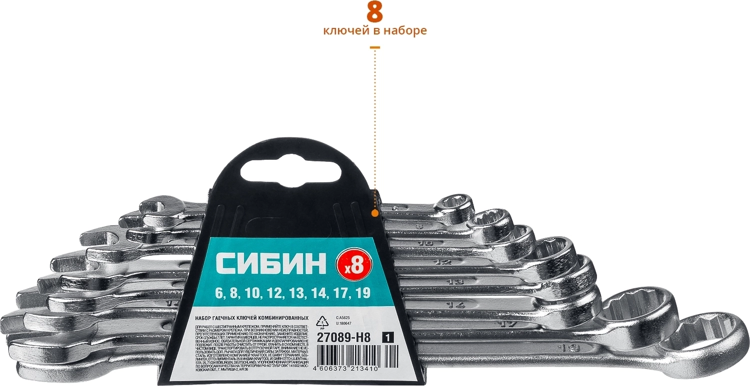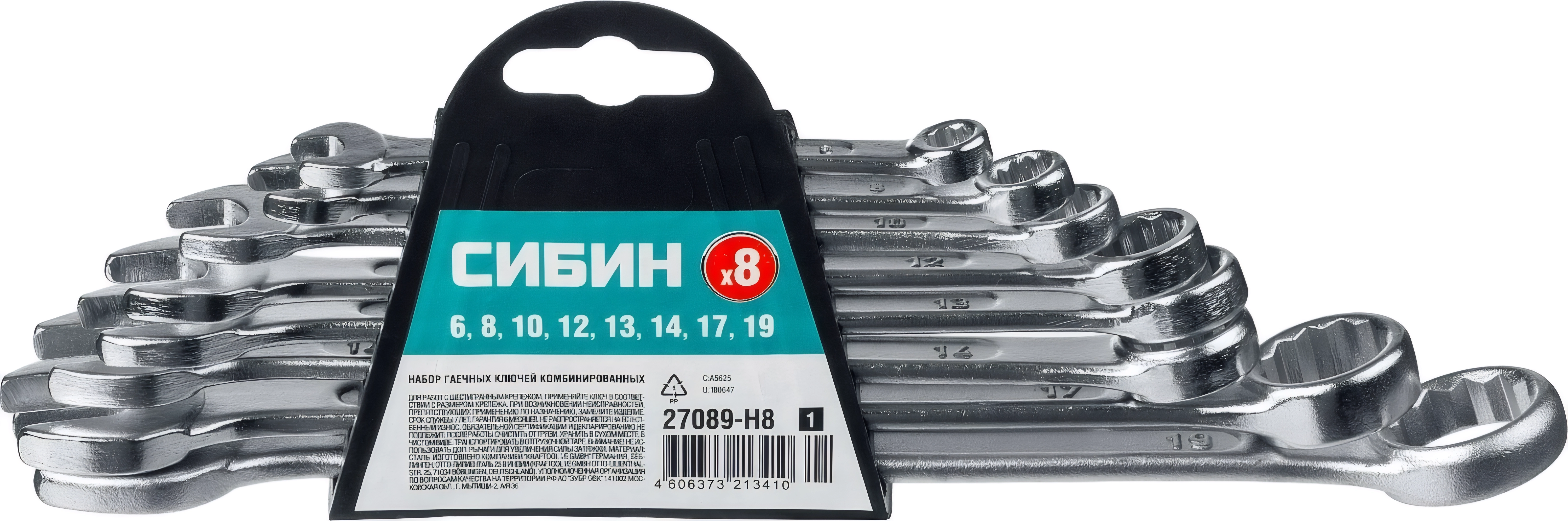 Набор комбинированных гаечных ключей СИБИН 8 шт, 6 - 19 мм