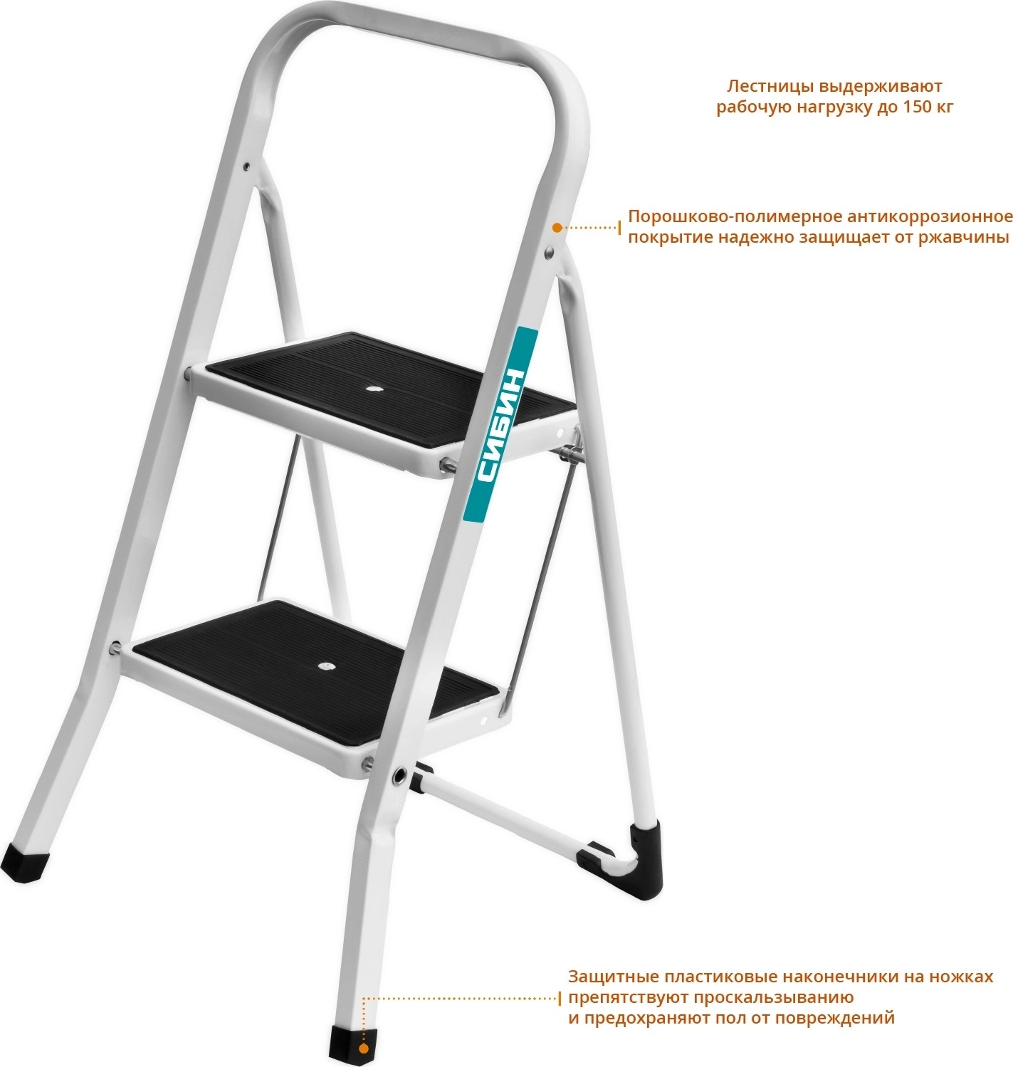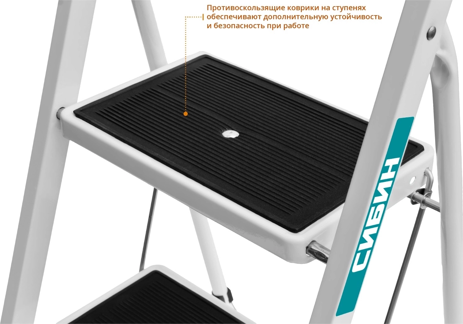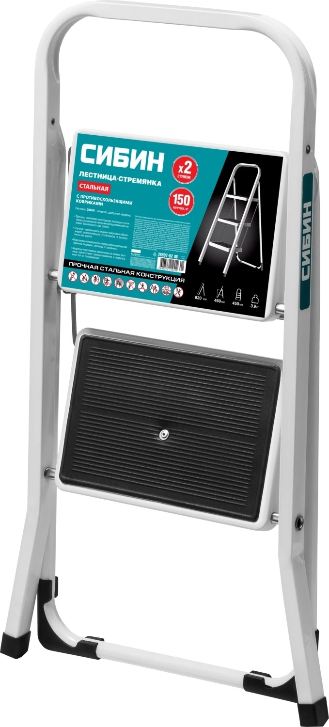 Стальная стремянка СИБИН 2 ступени, 46 см, c широкими обрезиненными ступенями