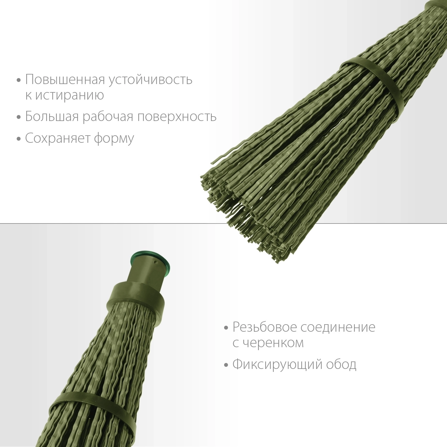 Пластиковая метла СИБИН 440 х 190 мм, полипропилен, коническое резьбовое соединение, круглая, с фиксирующим ободом