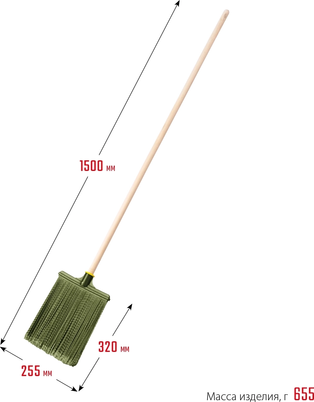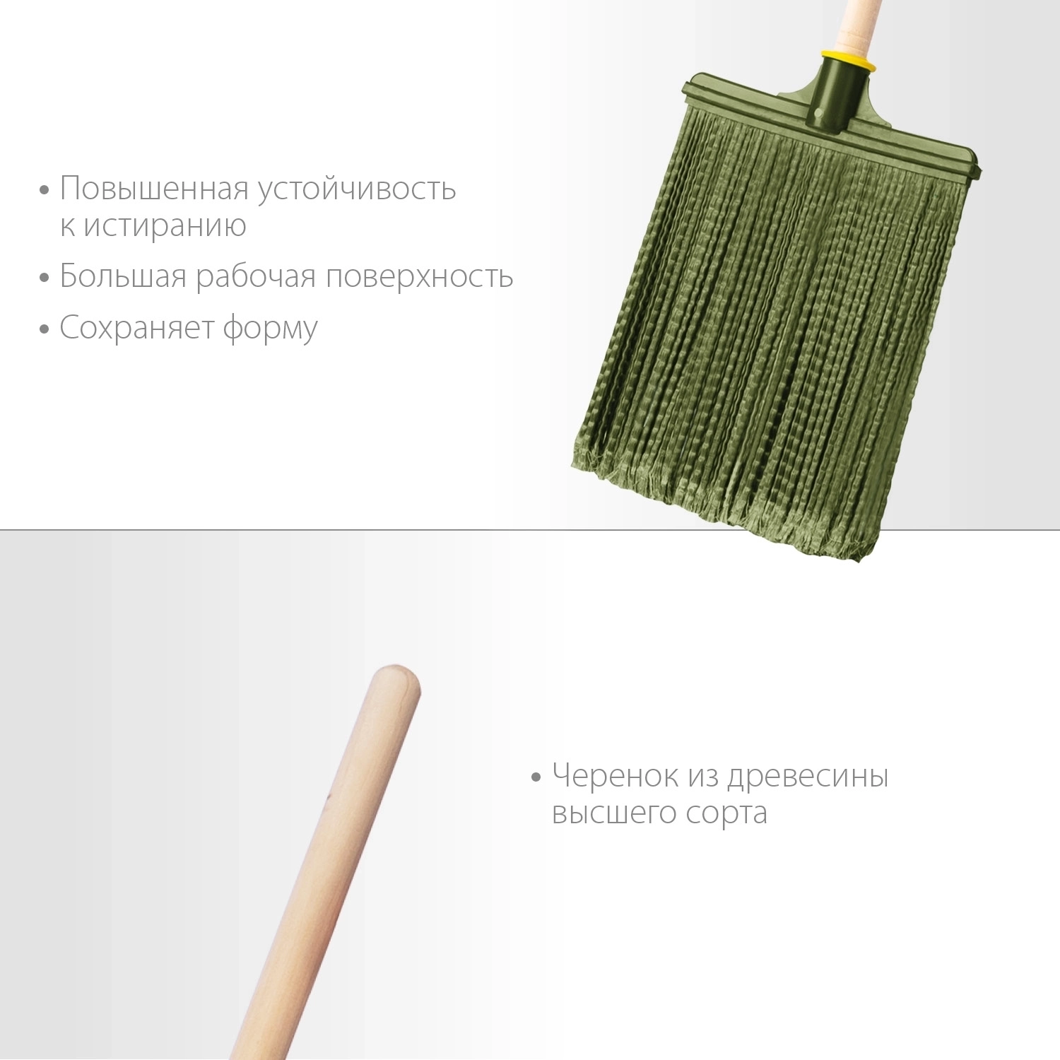 Пластиковая метла СИБИН 320 х 255 мм, распушенная,гибкая, полипропилен, коническое резьбовое соединение, плоская, на деревянном черенке
