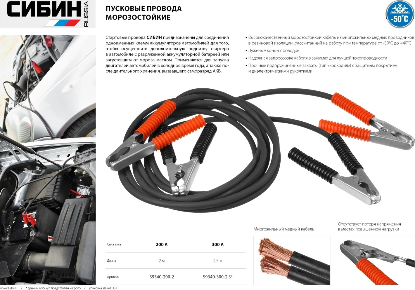 Пусковые морозостойкие провода СИБИН 200 А, 2 м