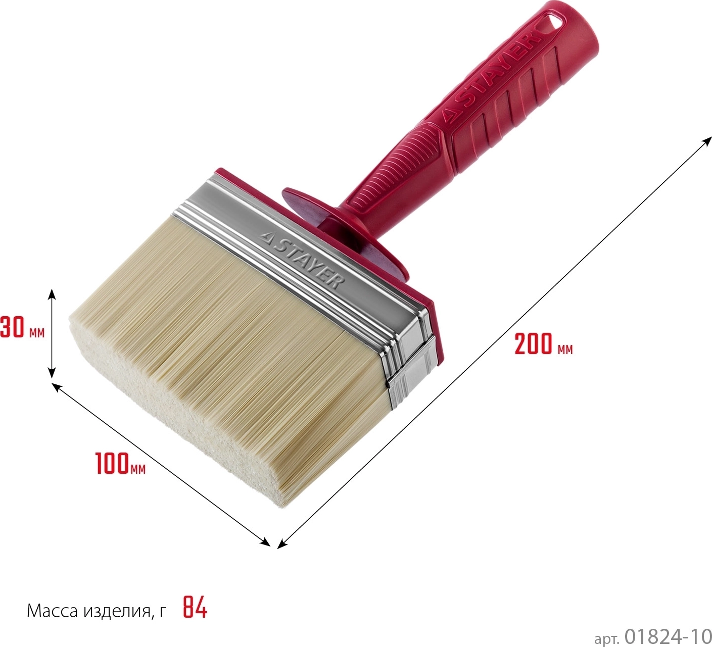 Предназначена для окрашивания поверхностей большой площади, для размыва старых лакокрасочных покрытий, нанесения клеевых составов. Может испрользоваться со всеми видами ЛКМ. Перед использованием и после окончания работ промойте кисть в растворителе.
