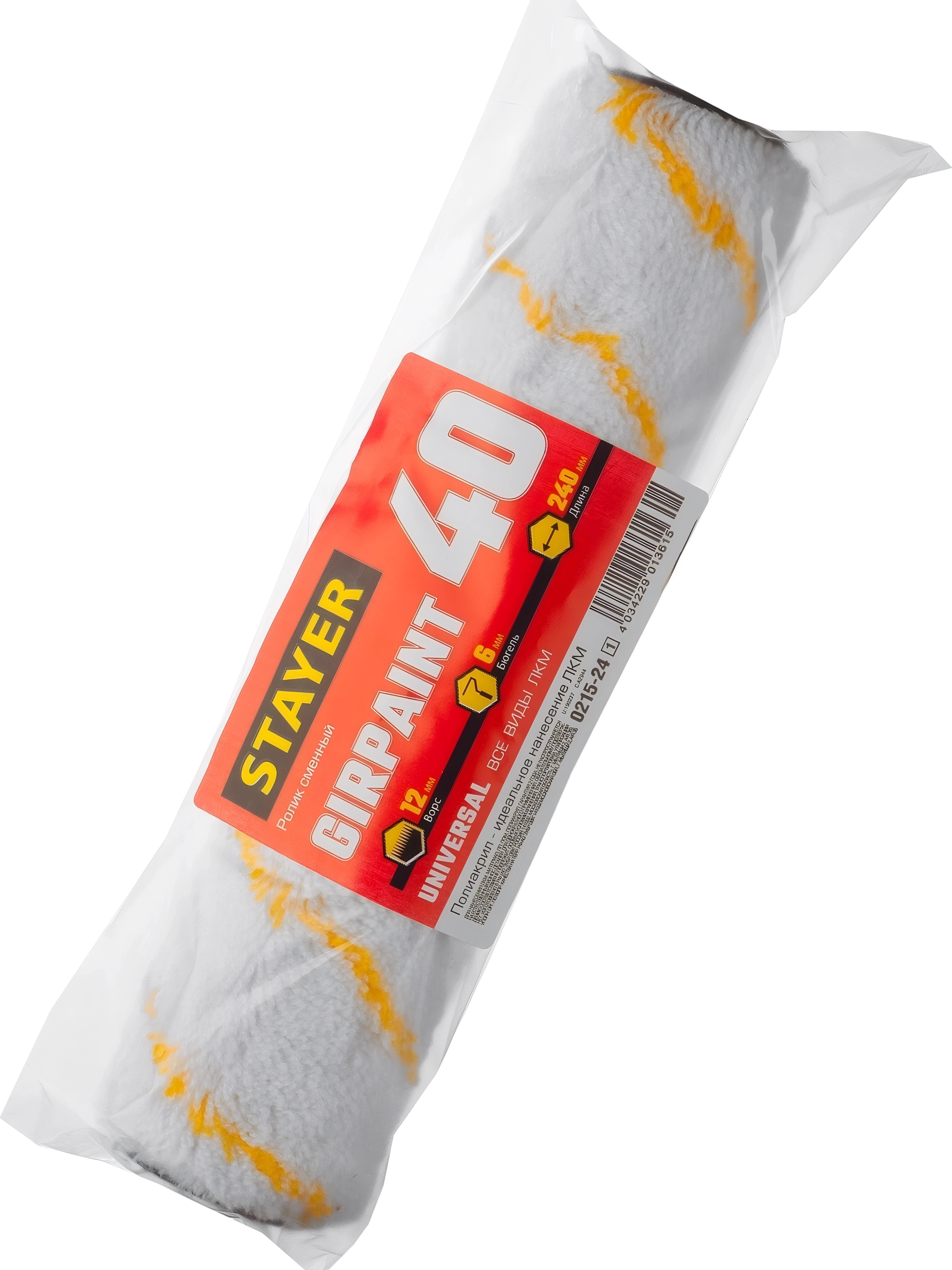 Малярный ролик STAYER GIRPAINT, 40 х 240 мм, бюгель 6 мм, ворс 12 мм, полиакрил, все виды ЛКМ