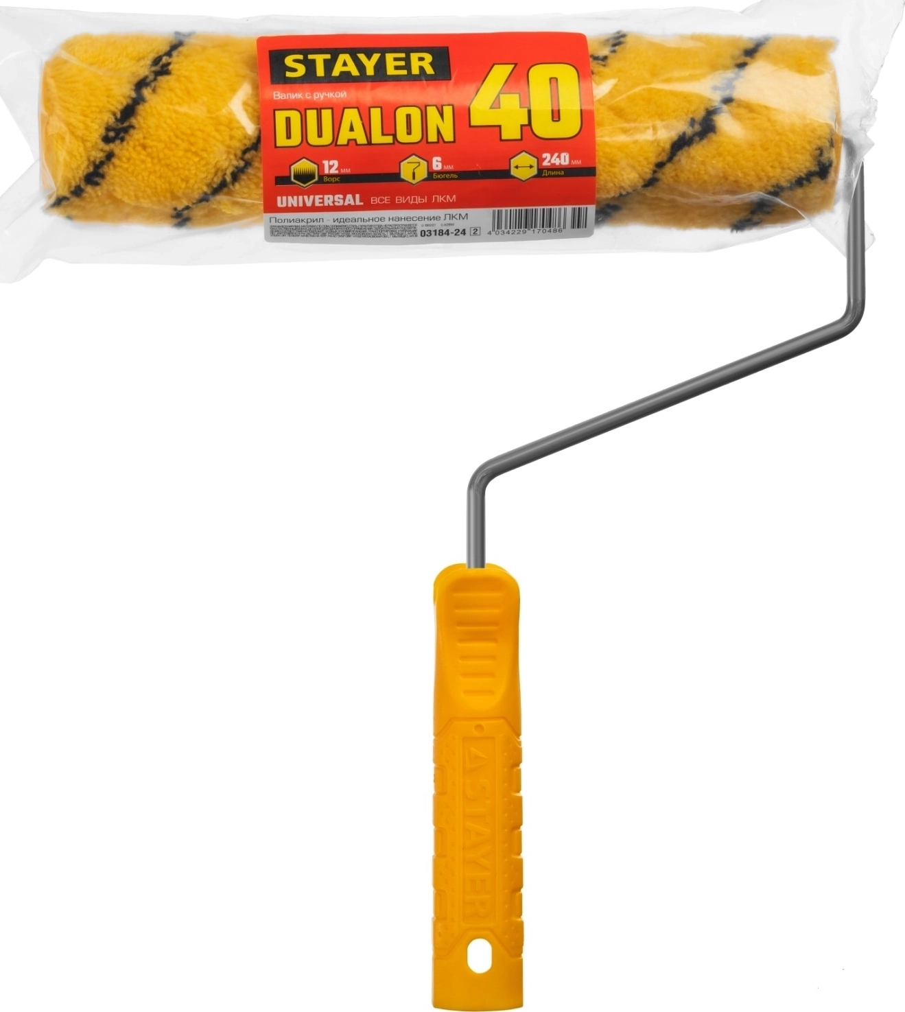 Малярный валик STAYER DUALON, 40 х 240 мм, бюгель 6 мм, ворс 12 мм, полиакрил, все виды ЛКМ