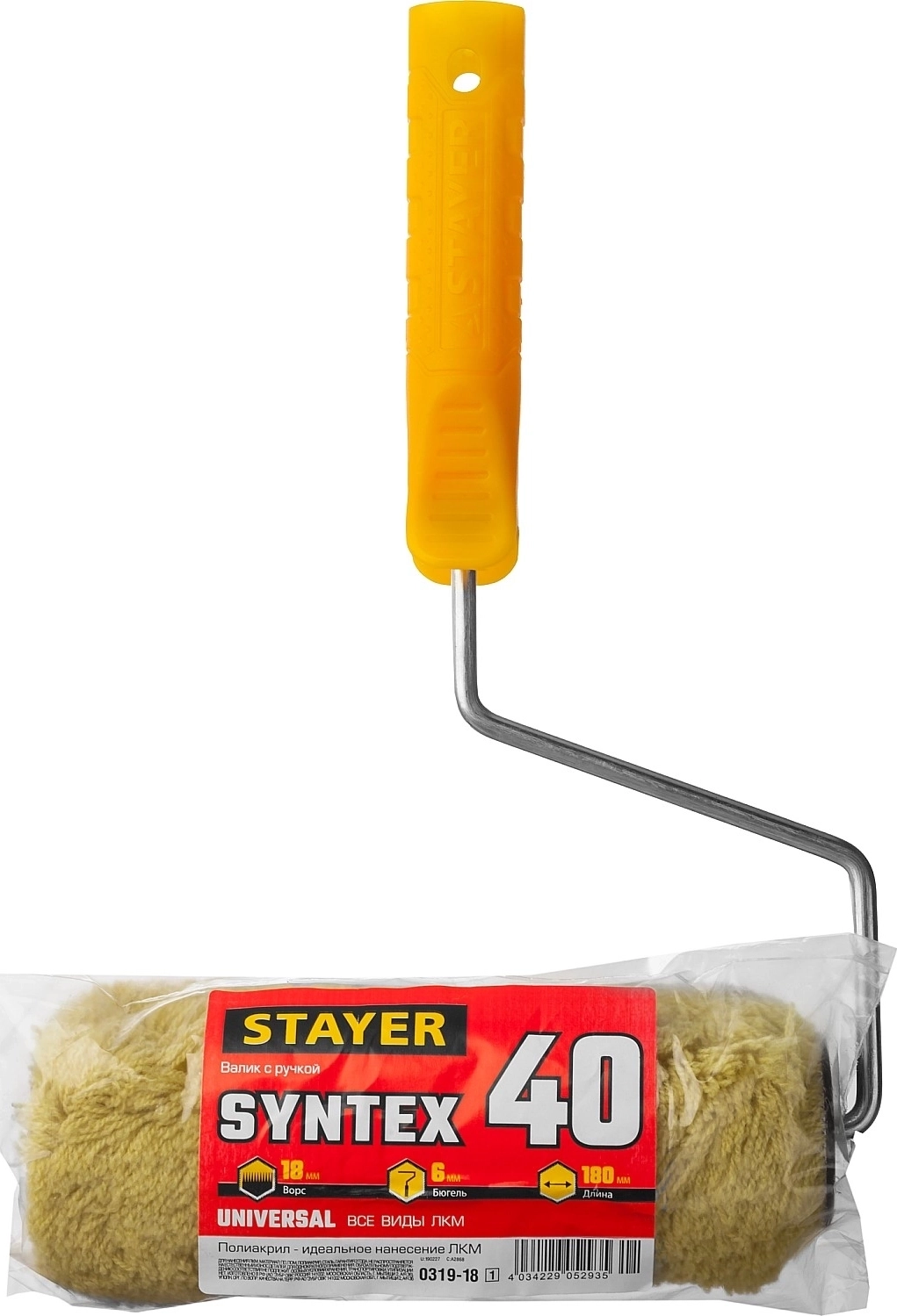 Малярный валик STAYER SYNTEX, 40 х 180 мм, бюгель 6 мм, ворс 18 мм, полиакрил, все виды ЛКМ