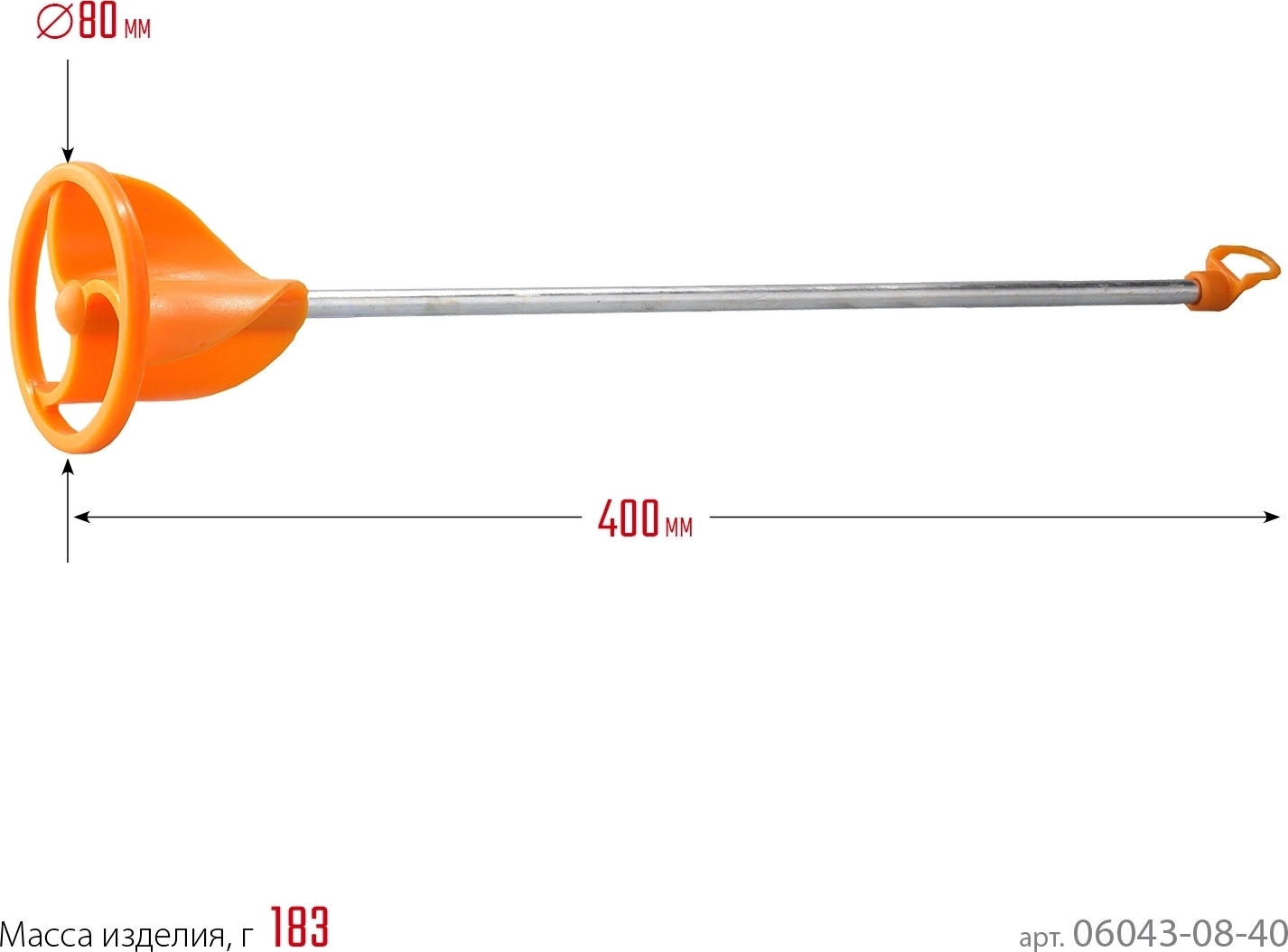 Миксер для красок турбина STAYER 80 х 400 мм, d 8 мм, пластмассовый