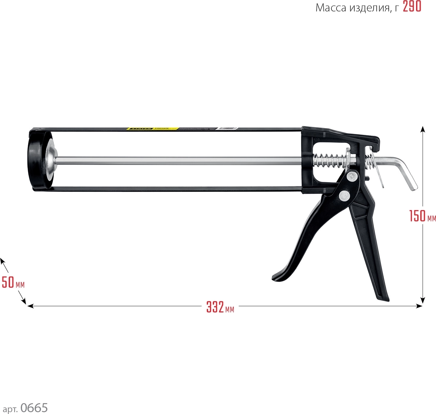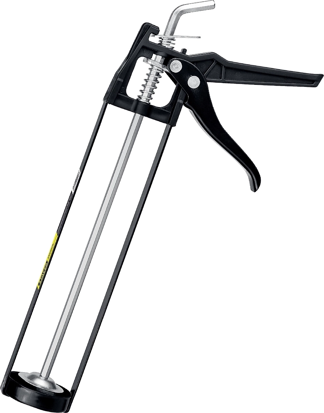 Пистолет для герметиков подходит для работы с картриджами объемом 310 мл, имеет скелетную конструкцию и ручку из ударопрочного пластика которые способствуют равномерной подачи клея либо герметика. Данная спецификация обеспечивает прочность и надежность конструкции пистолета при использовании.