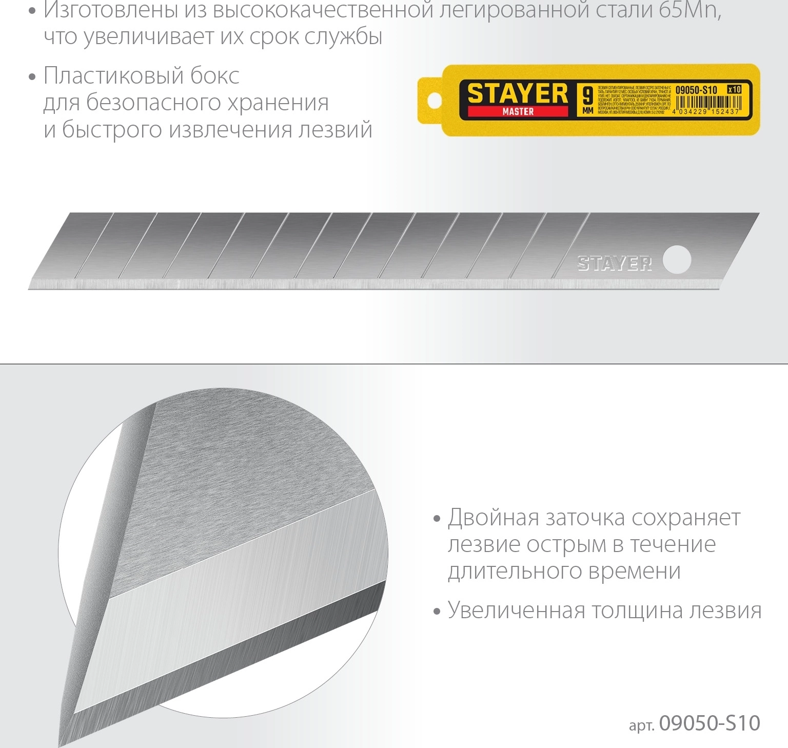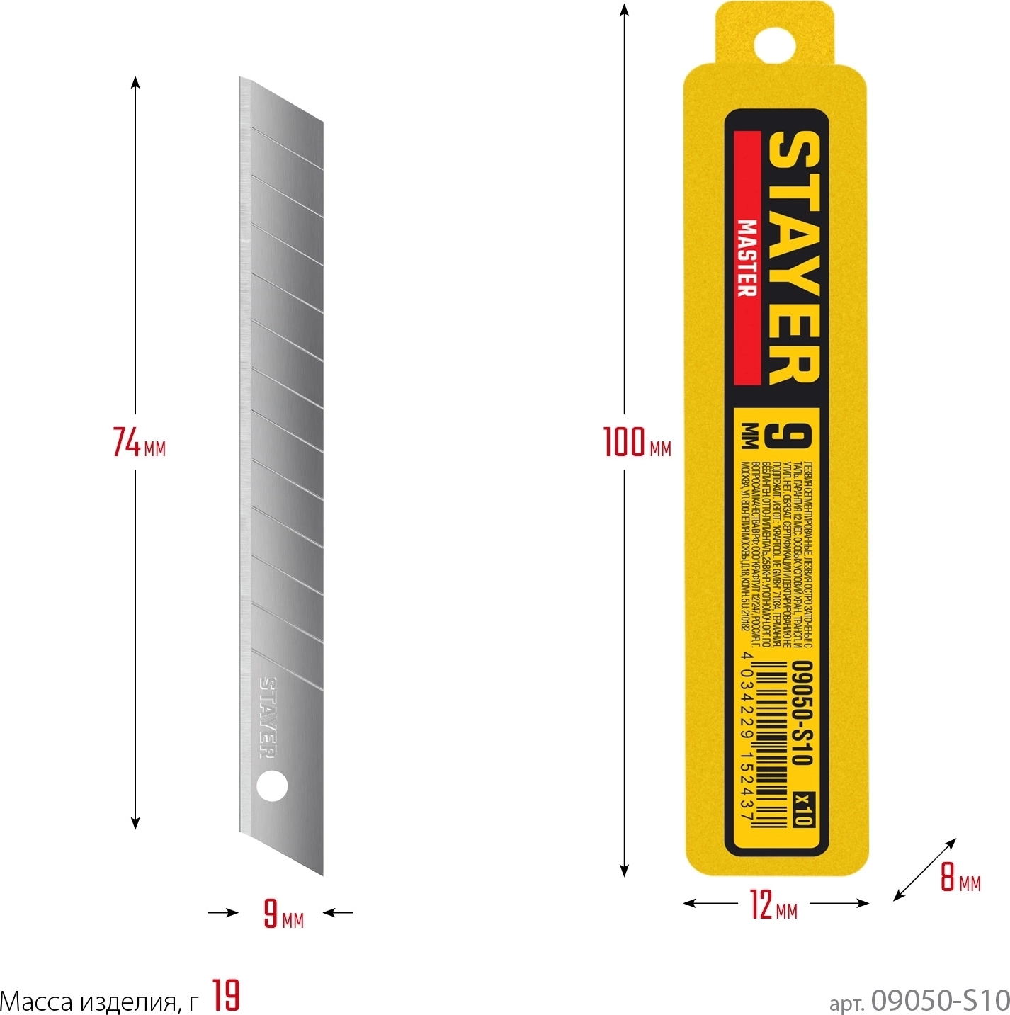 Сегментированные лезвия STAYER 9 мм, 10 шт