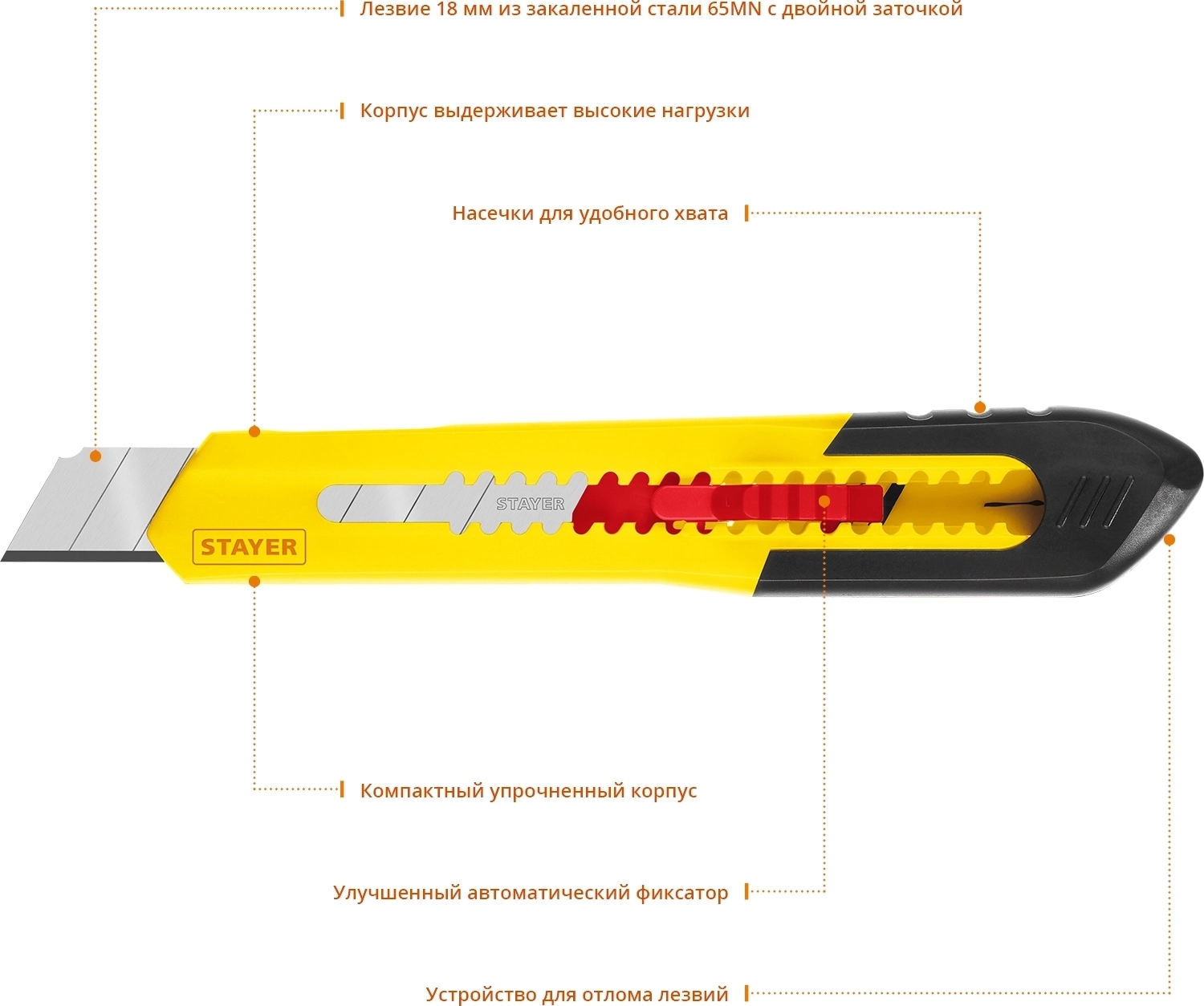 Нож из АБС пластика STAYER QUICK-18, 18 мм
