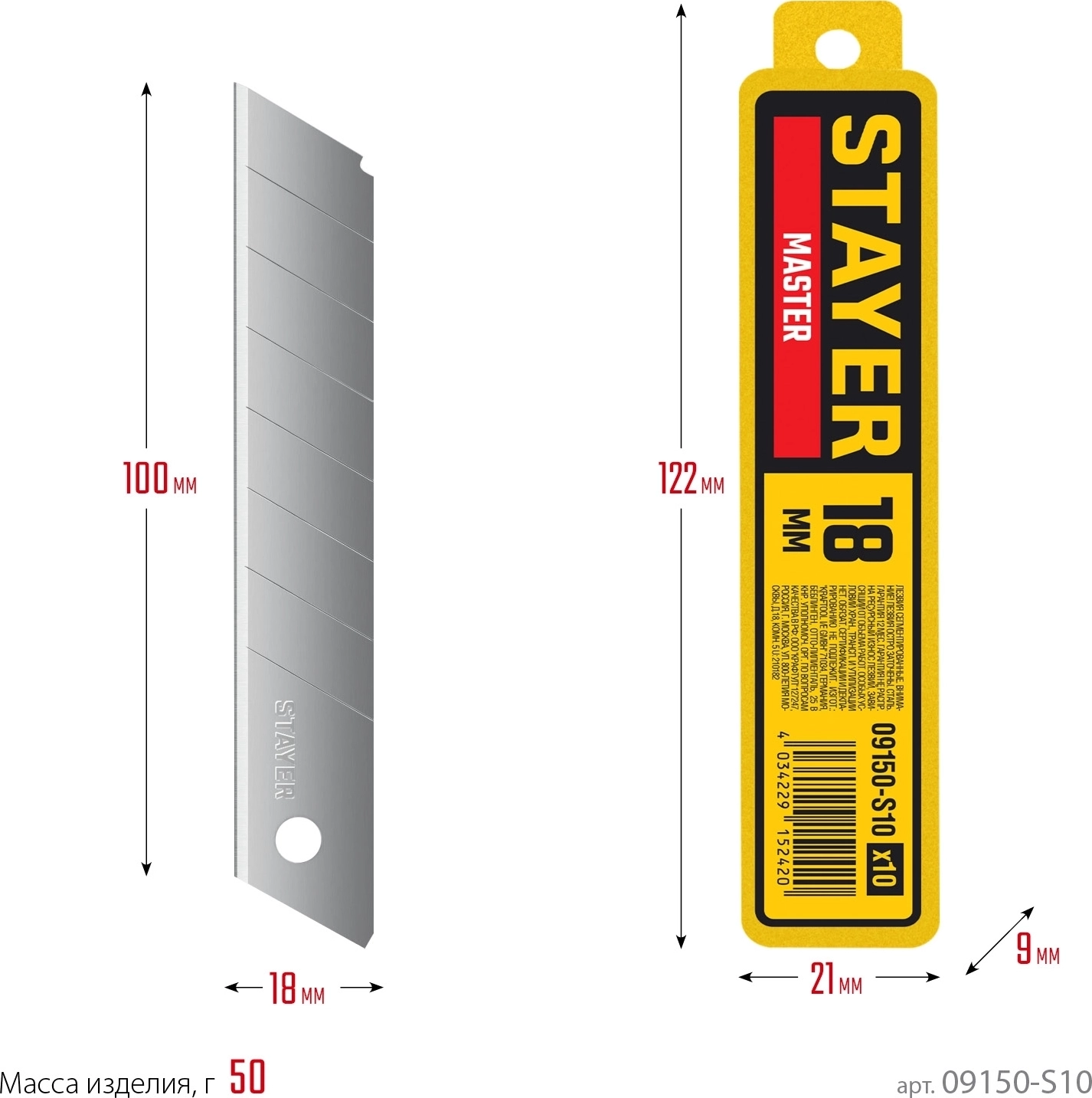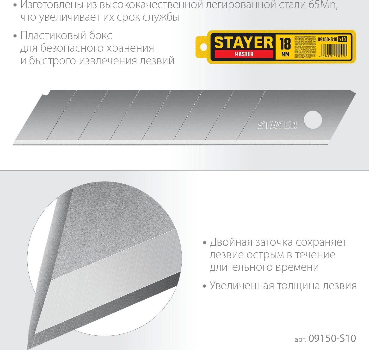 Сегментированные лезвия ( ) STAYER 18 мм, 10 шт