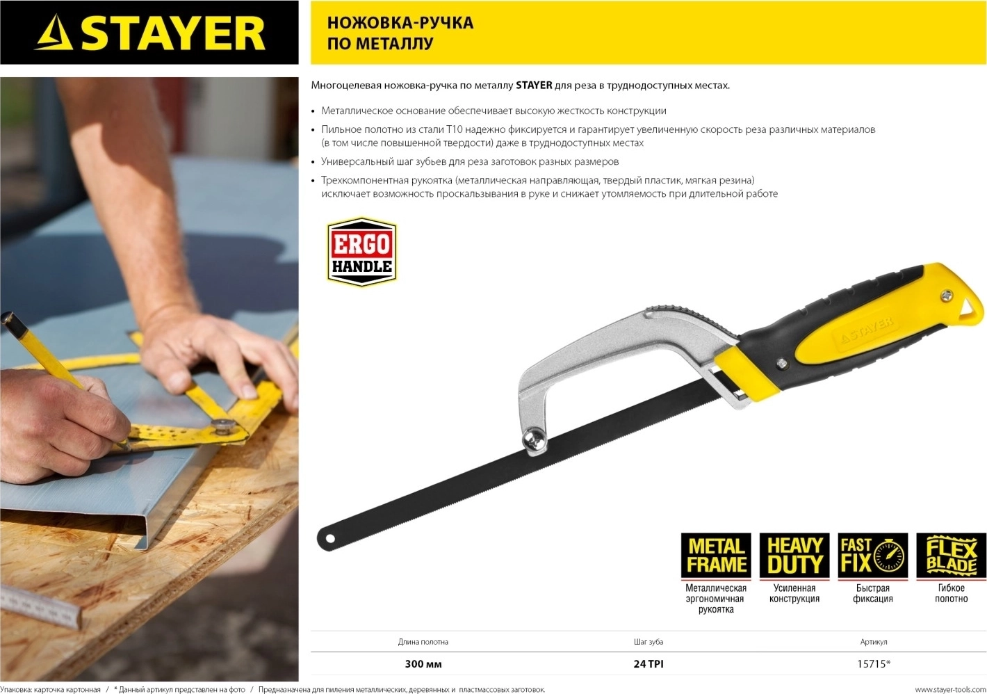 Многоцелевая ножовка по металлу Stayer для пиления заготовок в труднодоступных местах