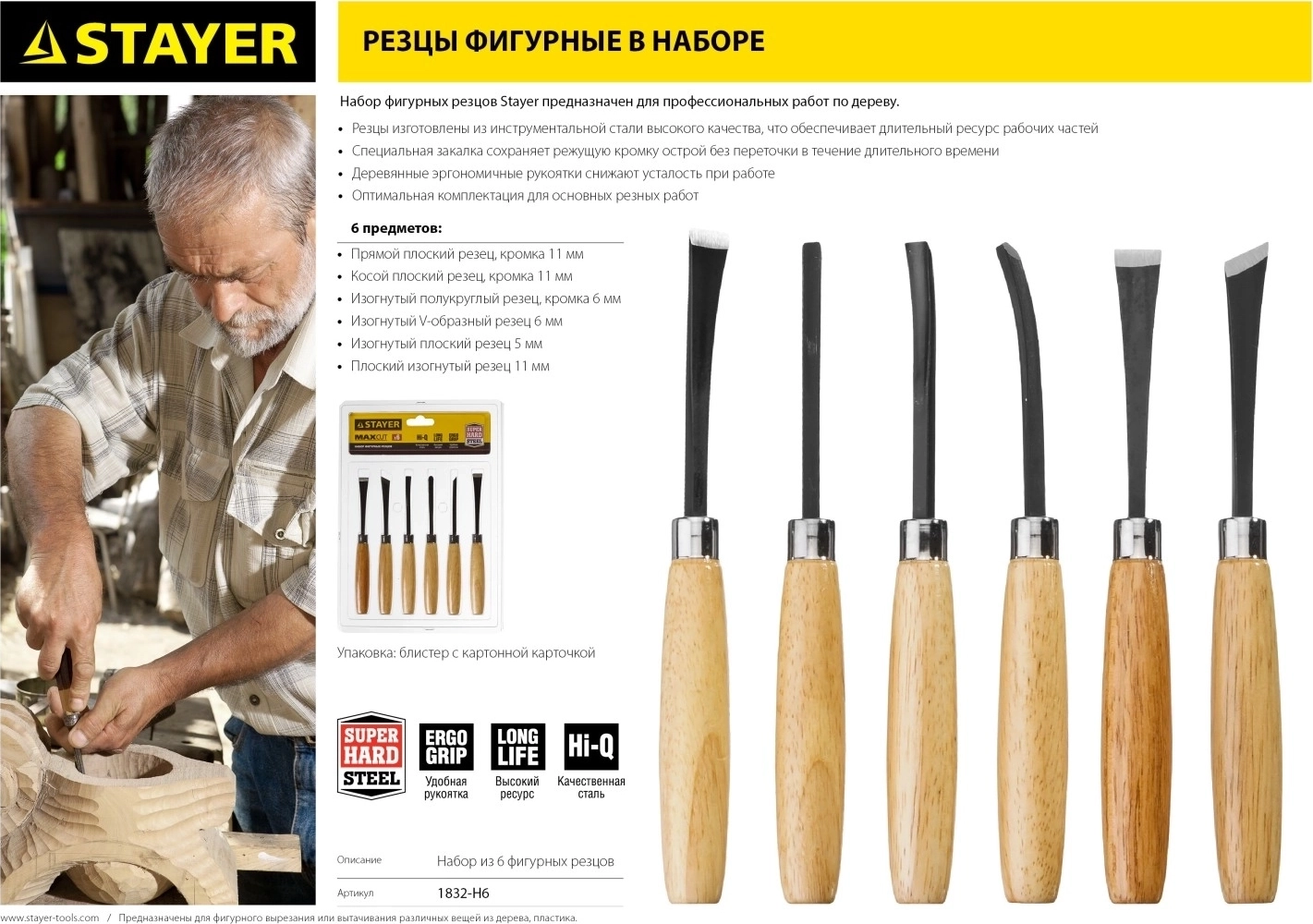 Набор фигурных стамесок-резцов по дереву STAYER MaxCut 6 предм