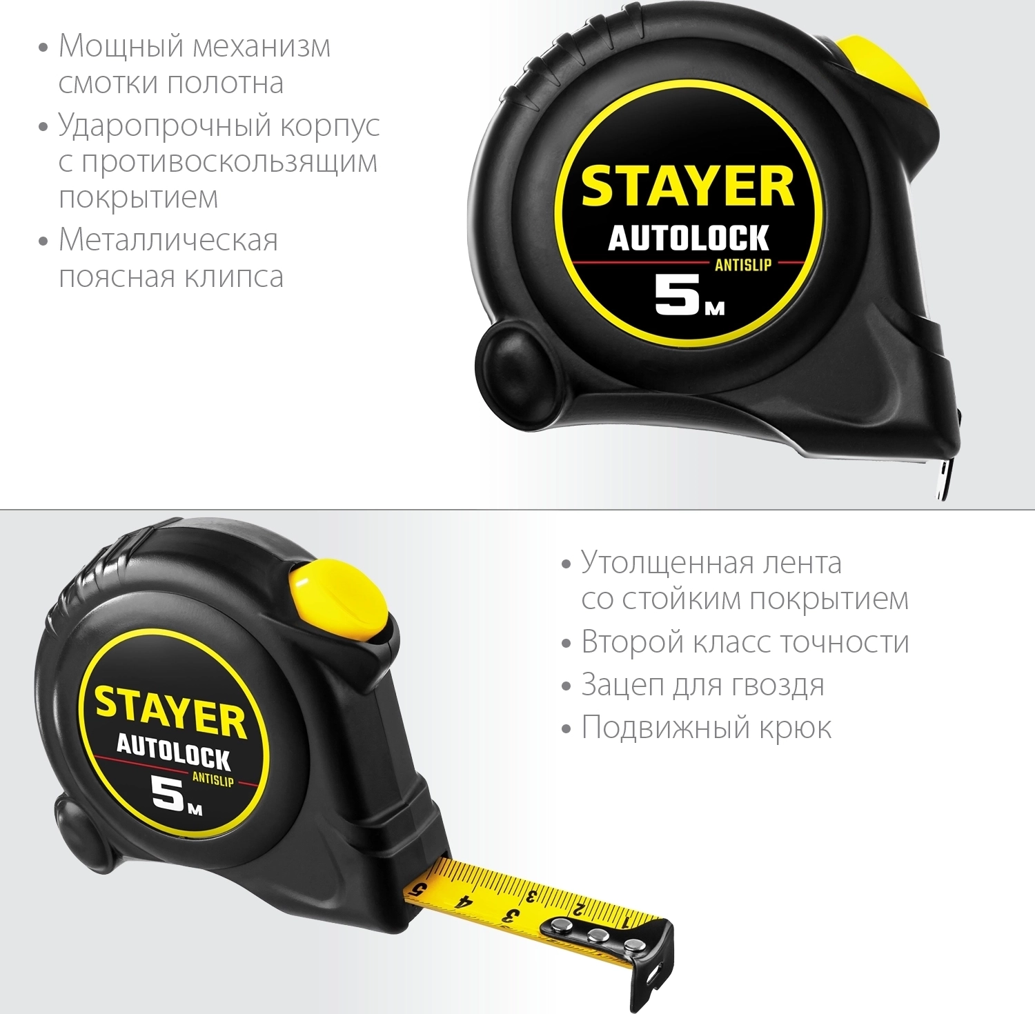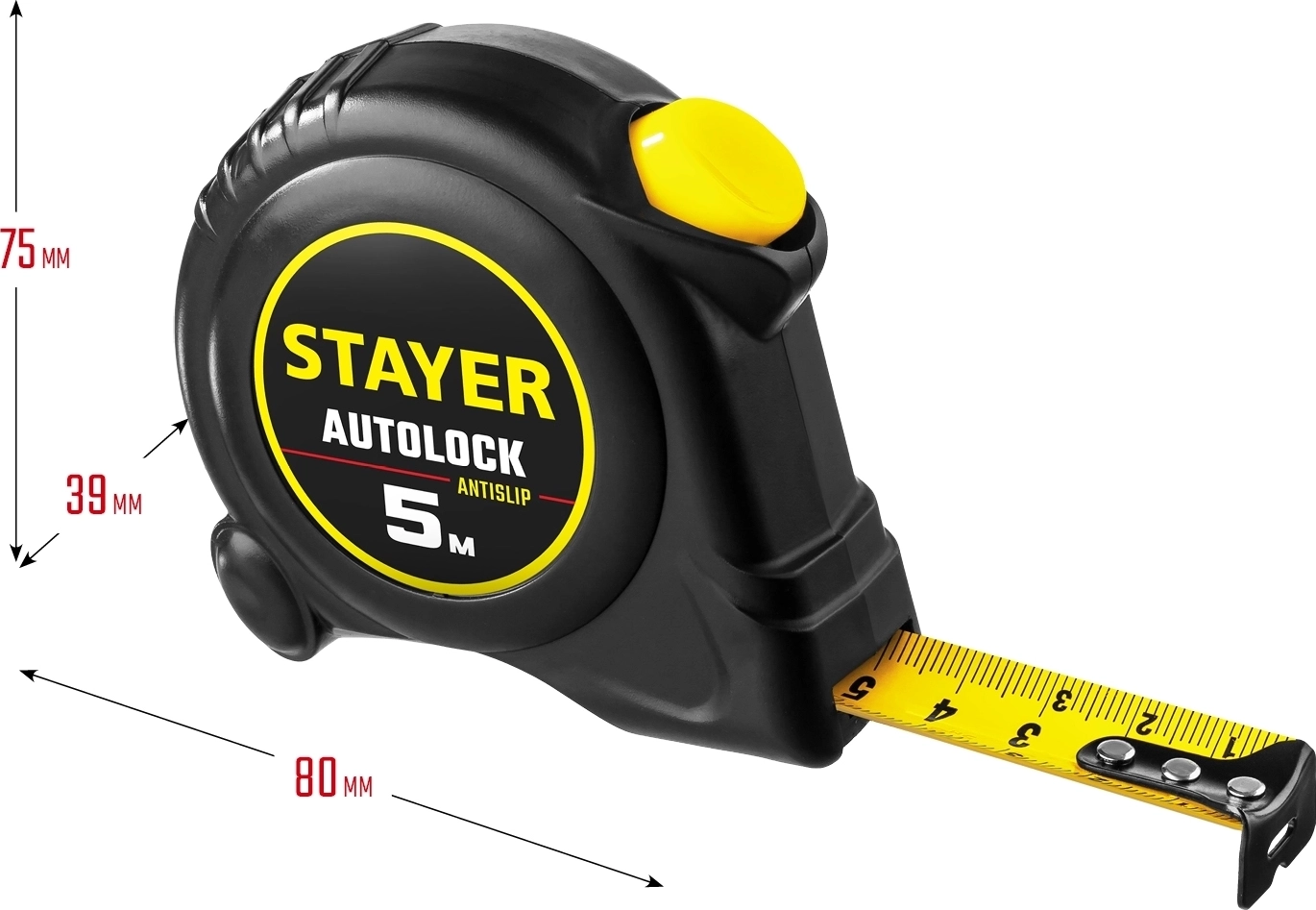 Рулетка с автостопом STAYER AutoLock, 5 м х 19 мм