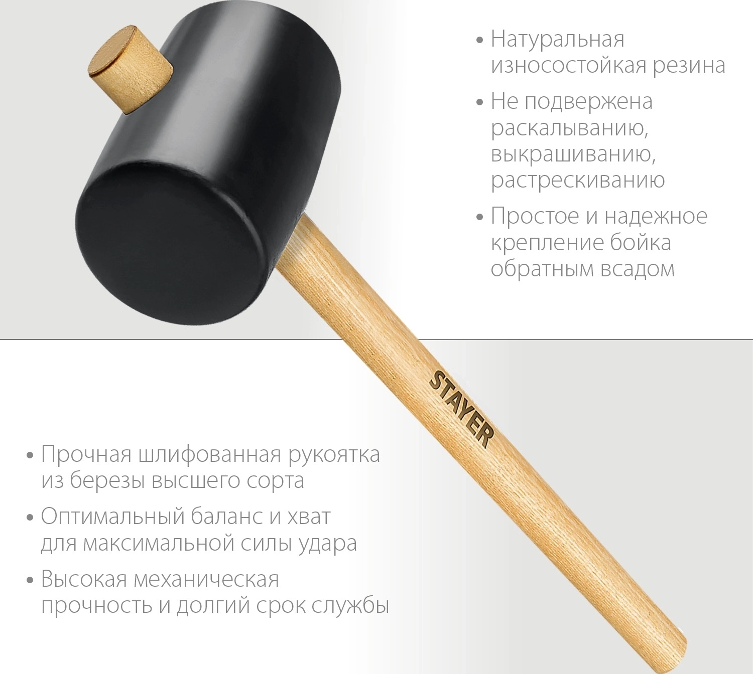 - Прочная деревянная рукоятка